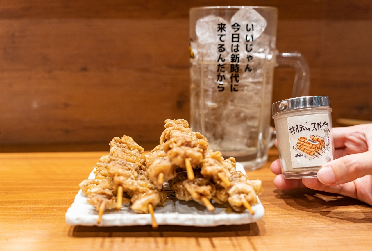 신지다이의 닭 껍질 튀김인 덴쿠시(伝串)라는 단어를 아무리 찾아봐도 나오지 않아서 의아해했는데, 알고 보니 가게에서 만든 상표출원까지 되어 있는 단어였습니다. 전설의 쿠시(伝説の串)라는 뜻으로 그만큼 이 요리에 자부심을 가지고 있는듯 합니다.