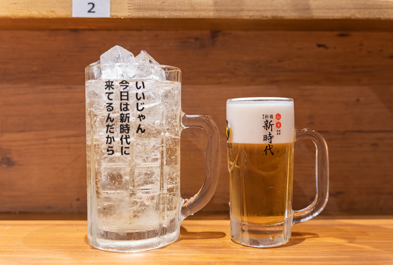 눈에 띄는 메뉴로는 가슴살, 모래집, 츠쿠네 등 각 닭 부위별의 꼬치가 150엔 정도, 닭 육회 480엔, 각종 쿠시카츠 180엔 등이 있습니다. 안주만 저렴한가 했더니 같이 팔고 있는 드링크 메뉴도 저렴합니다. 우선 생맥주가 기본 190엔, 그리고 하이볼이 150엔으로 편의점에서 마시는 거나 별 차이가 없는 가격입니다. 물을 타나 싶을 정도로 저렴해서 긴가민가 하며 주문을 했지만 제가 알고 있던 일본의 생맥주와 다르지 않았습니다. 맥주의 브랜드는 삿포로 쿠로라벨 나마츄(札幌黒ラーベル生中), 하이볼은 조금 아쉽게도 산토리의 "가쿠빙(角瓶)"를 사용하지 않고 약간 더 저렴한 "토리스(トリス)"를 사용한 것 같았습니다.