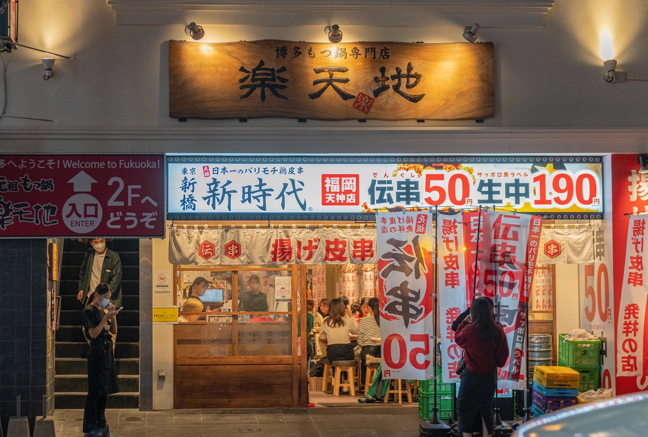 최근 일본 전역에서 종종 만날 수 있는 이자카야인 "신지다이 (新時代)". 신지다이의 덴쿠시(伝串)라는 먹거리가 1개당 50엔, 맥주가 190엔 이라고 적힌 간판이 항상 눈길을 끌게 되지만 너무 저렴한 가격 탓에 매번 그냥 지나쳤는데 이번에 후쿠오카에서 드디어 들려보게 되었습니다.