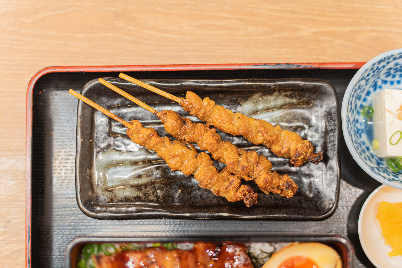 이번에 주문한 메뉴는 야키토리쥬 테이쇼쿠(焼き鳥重定食) 979엔과 구루구루 토리카와 쿠시(ぐるぐるとり皮串) 3개 (각 154엔) 입니다. 가격대비 양도 훌륭하고 사진 찍기에도 좋은 메뉴입니다. 딱 먹고 싶은 메뉴들로 구성 되어 있습니다.