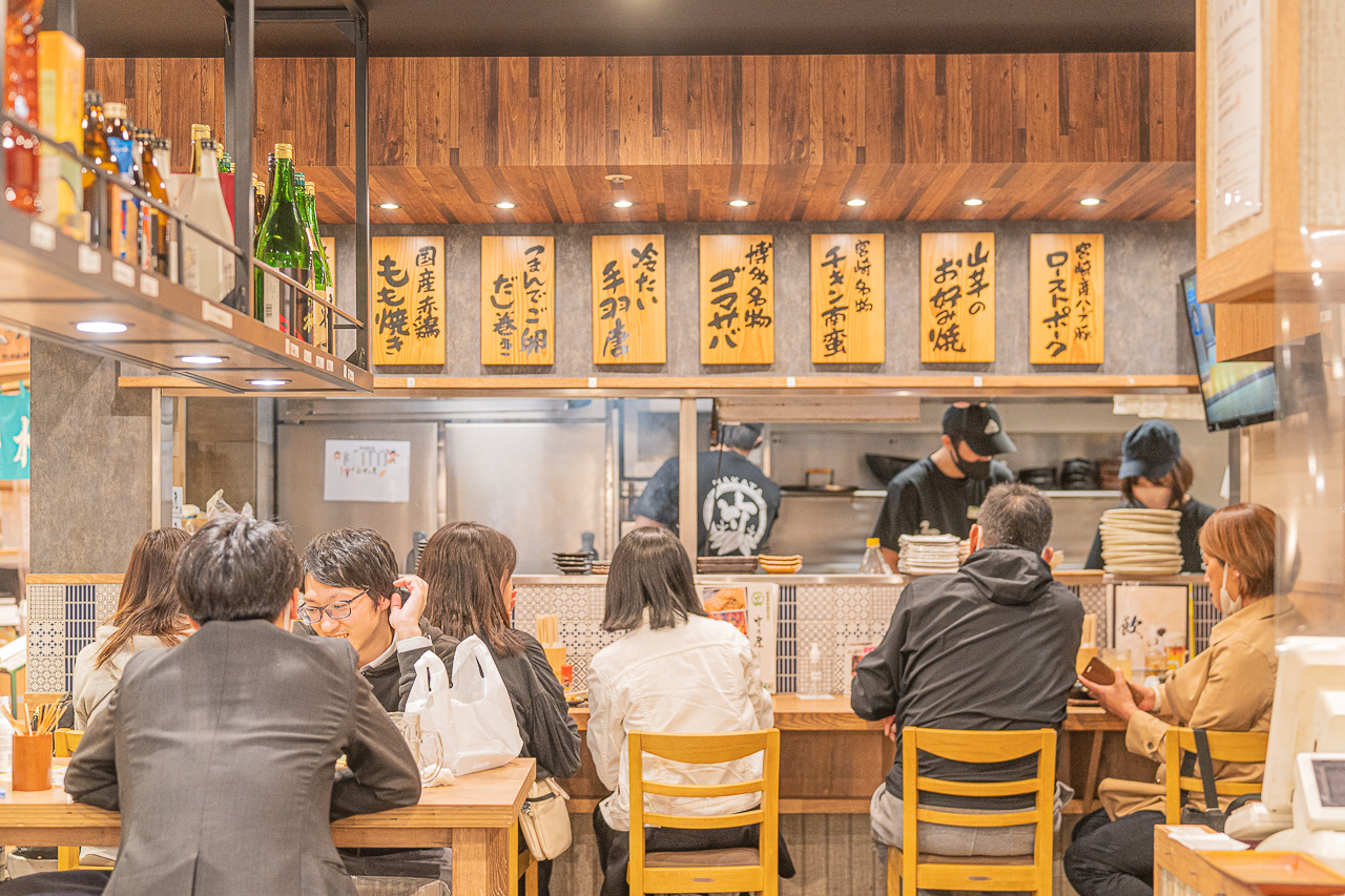 대규모의 상업시설인 만큼 가게 내부의 인테리어는 깔끔합니다. 오픈 키친으로 야키토리나 토리카와가 구워지는 향이 식욕을 자극합니다. 맥주를 포함한 각종 일본 사케도 판매하고 있어 직장인들이 간편하게 먹고 마시기 좋은 느낌입니다. 인기점이라 피크 시간대는 웨이팅을 하는 모습도 종종 보입니다.
