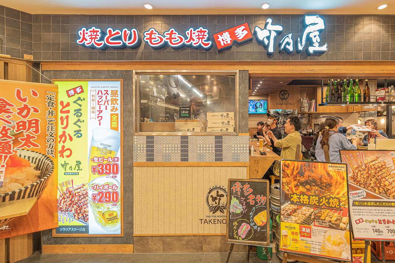 이번에 들린 곳은 하카타 타케노야(博多 竹乃屋). 하카타에서 시작하여 일본 전국에 25점포를 가진 토리카와 전문 체인점입니다. 하카타에만 공항과 하카타역을 포함하여 10 점포가 있고 텐진에는 솔라리아 스테이지의 지하 2층의 식당가에 위치해 있습니다. 후쿠오카의 솔라리아 스테이지는 텐진 지하철역과 바로 연결된 상업시설로, 다양한 음식점, 카페, 쇼핑몰 등이 있습니다. 솔라리아 스테이지 근처에는 3성 급부터 5성급까지 다양한 호텔이 있어 숙박하기에도 좋습니다.