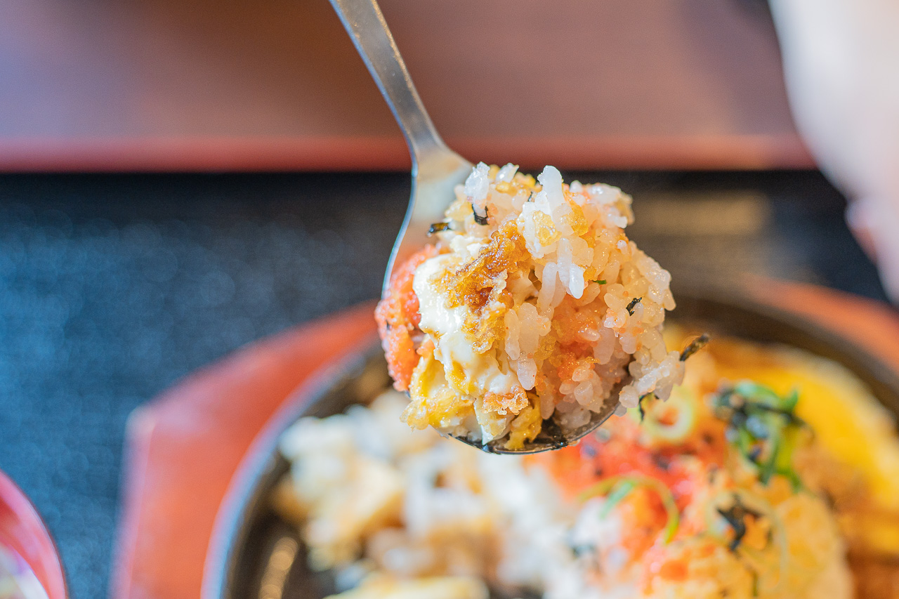 철판 정식도 먹어 보고 싶어서 주문했습니다. 이 메뉴는 39우동의 오리지널 메뉴로 철판에 계란을 두른 뒤, 밥을 큼지막하게 올리고 튀김을 만들 때 나오는 찌꺼기인 텐카스(天かす)를 뿌리고 카케 우동 소스를 뿌린 다음 후쿠오카 명물인 멘타이코를 올린 메뉴입니다. 다른 데서 본 적이 없는 음식이라 주문했는데 생각보다 너무 맛있게 먹었습니다. 텐카스의 바삭함과 멘타이코의 절묘한 소금기, 그리고 계란과 우동소스가 어울려 새로운 경험이었습니다.
