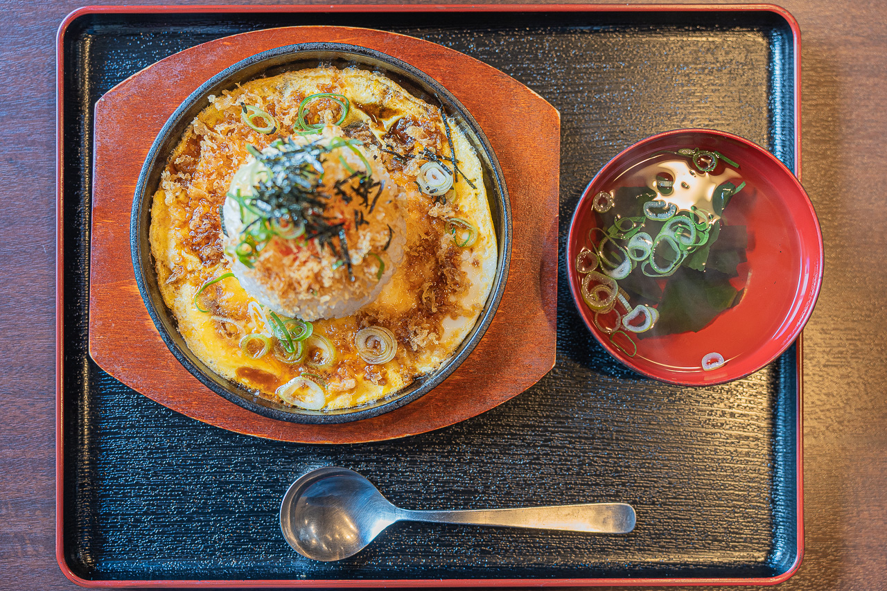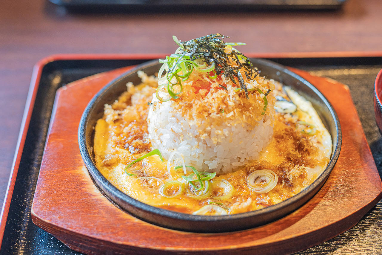 철판 정식도 먹어 보고 싶어서 주문했습니다. 이 메뉴는 39우동의 오리지널 메뉴로 철판에 계란을 두른 뒤, 밥을 큼지막하게 올리고 튀김을 만들 때 나오는 찌꺼기인 텐카스(天かす)를 뿌리고 카케 우동 소스를 뿌린 다음 후쿠오카 명물인 멘타이코를 올린 메뉴입니다. 다른 데서 본 적이 없는 음식이라 주문했는데 생각보다 너무 맛있게 먹었습니다. 텐카스의 바삭함과 멘타이코의 절묘한 소금기, 그리고 계란과 우동소스가 어울려 새로운 경험이었습니다.