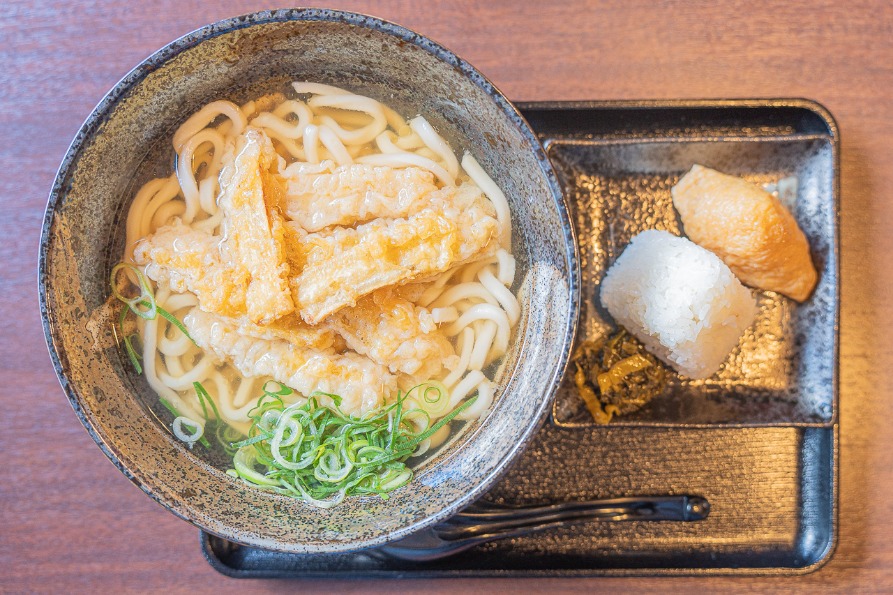 점심때는 우동 이외에도 가성비 좋은 정식도 판매하고 있습니다. 소스에 돈가스를 담근 "카츠동 세트"나 전쟁이 튀김 정식인 "아지 프라이 정식" 그리고 철판 밥과 우동세트도 눈에 띕니다. 런치타임인 11시부터 18시 사이에는 100엔 할인도 해준다고 합니다.