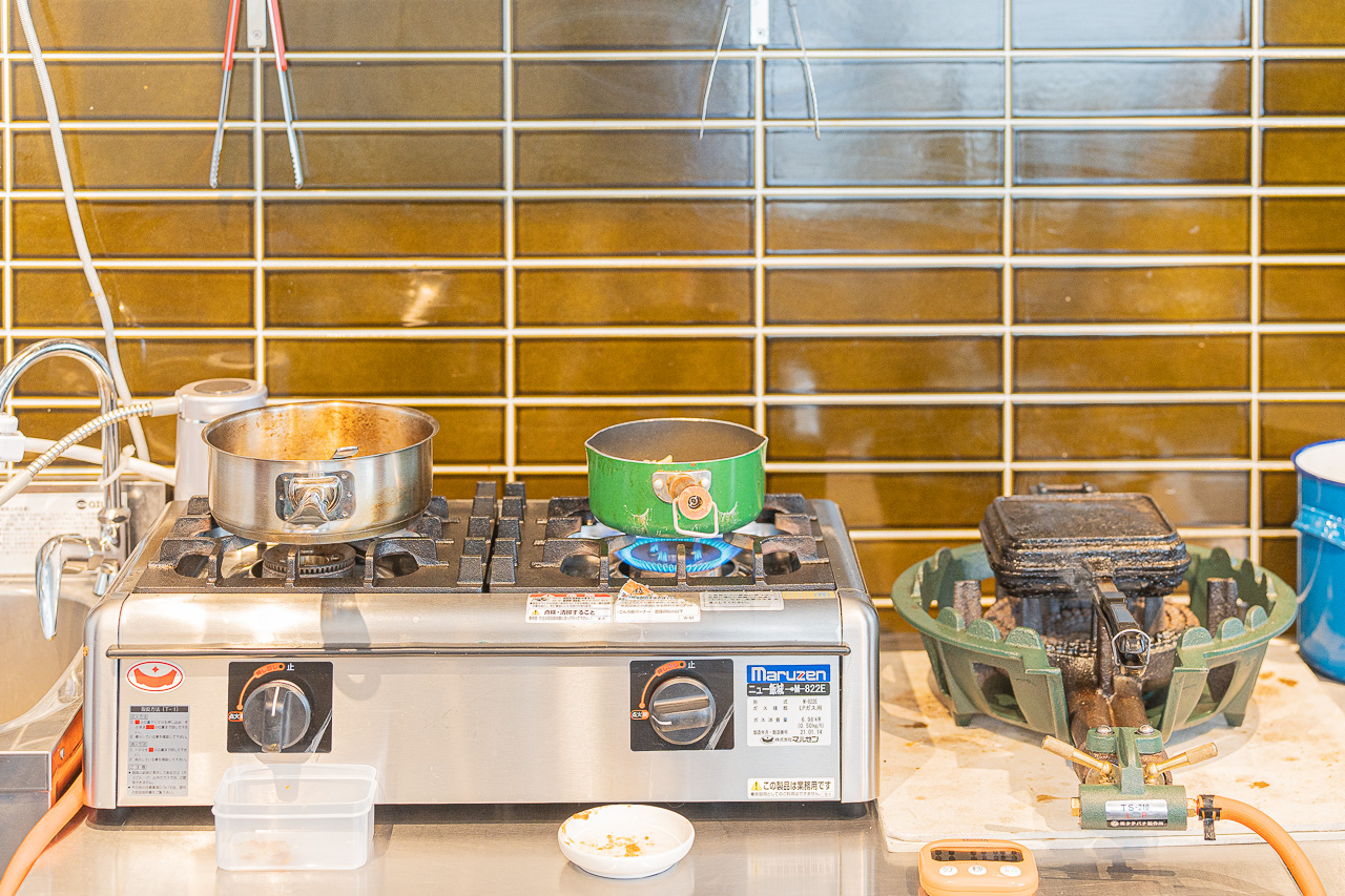 카레를 제공하는 식기는 후쿠오카 각지의 도자기를 사용하고 카레는 치킨, 양고기의 스파이시, 달달한 키마카레로 3가지가 준비되어 있습니다. 밥을 추가하게 되면 100엔의 추가요금, 맵기를 조절 하게 되면 2배 이상의 경우 50엔 추가입니다. 햄버거 스테이크 300엔, 치즈 200엔, 고수100엔 등 토핑이 있고 수제 햄버거 스테이크는 개수 한정으로 인기가 가장 많습니다. 치즈 토핑은 고객님 자리에서 직접 녹인 치즈를 뿌리는 퍼포먼스를 진행하고 있습니다. 이번에 주문한 카레는 치킨 카레와 키마 카레입니다.