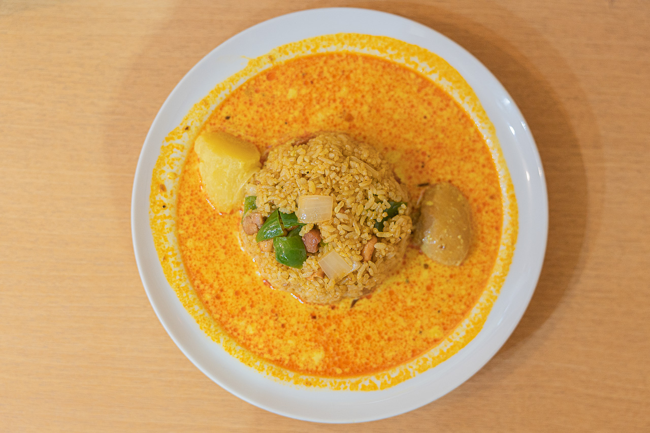 스리랑카 카레는 인도 카레나 일본 카레와는 다른 특징을 가진 요리입니다. 스리랑카 카레에서는 믹스 향신료인 '투나파하'가 맛의 결정적인 요소입니다. 투나파하에는 고수, 쿠민, 겨자시드, 계피, 카르다몬, 쿠 로브, 카레가루 등이 들어 있습니다. 이 향신료들을 절구로 으깨어 분말 형태로 만듭니다. 투나파하는 카레의 재료를 볶거나 끓일 때 사용됩니다. 이외에도 강황, 타마린도, 가람마살라 등이 스리랑카 카레에 사용되기도 합니다. 스리랑카 카레의 재료는 레시피에 따라 다양하지만 일반적으로 닭고기, 돼지고기, 생선, 콩 등 단백질원과 양파, 토마토, 감자, 강낭 등 채소가 사용됩니다. 스리랑카 후쿠오카에서는 감자와 닭고기가 큼지막하게 한 점씩 들어가 있었습니다.