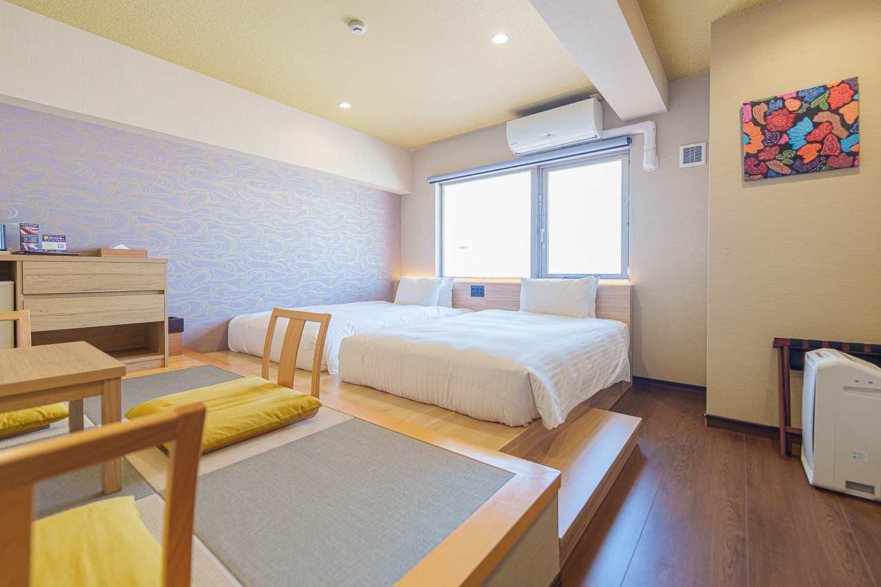 바닥은 다다미로 되어 있어 기분 좋은 쿠션감이 느껴지고