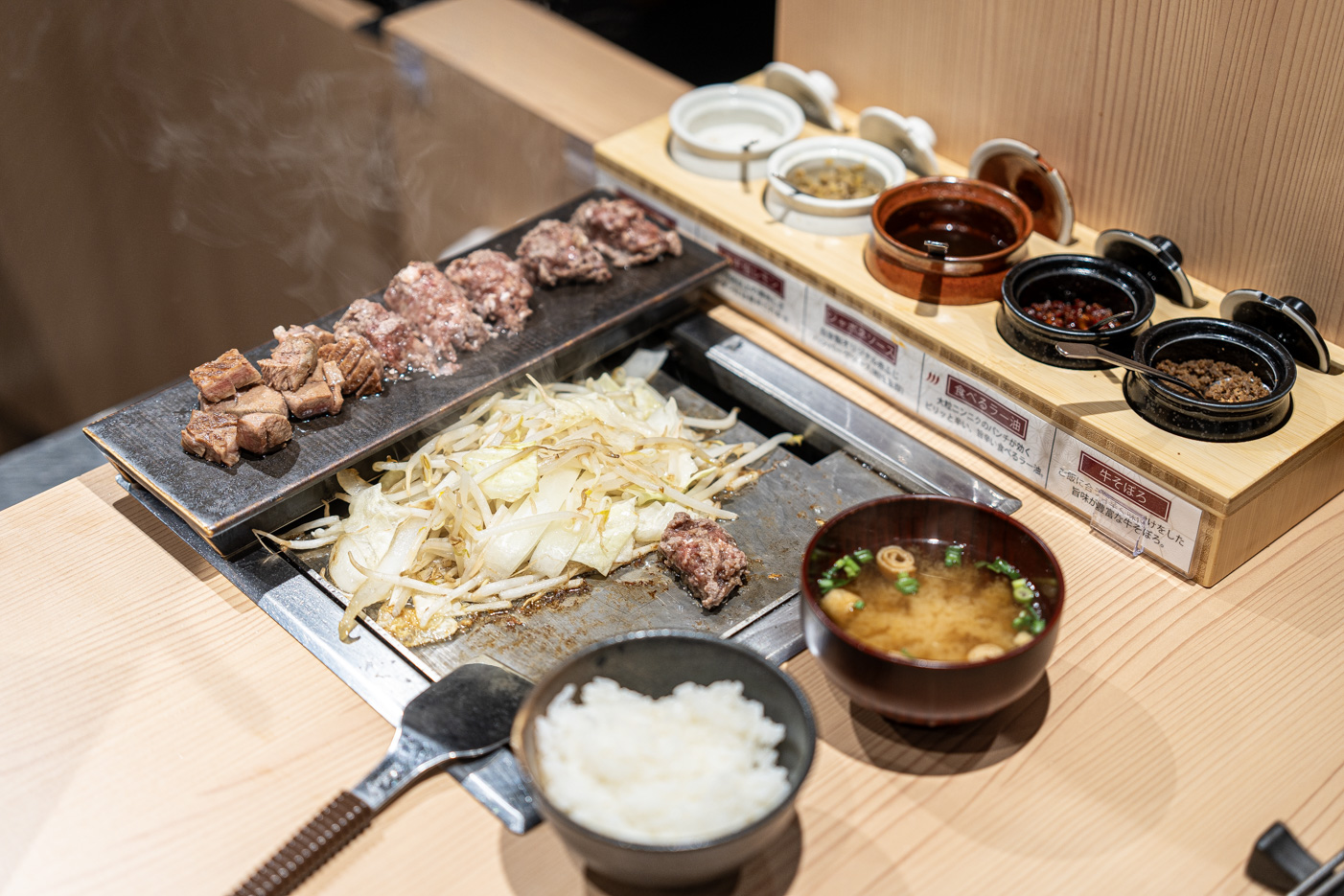 오사카의 옆 동네 고베에서 유명한 햄버그 스테이크 가게가 드디어 오사카에 상륙했다. 매번 가보고 싶던 가게인데 여기는 햄버그 스테이크를 좋아하시는 분들은 한번 들려 보시길 바란다. 우설도 같이 먹고 싶어서 특상 흑털와규 아카후지 햄버그 스테이크 미디움과 마블링 규탄 스테이크 3300엔을 시켰지만 그냥 햄버그 스테이크 라지를 시키시는걸 추천. 마지막의 오차즈케(히츠마부시)는 330엔을 추가하면 되는데 꼭 추가하자.