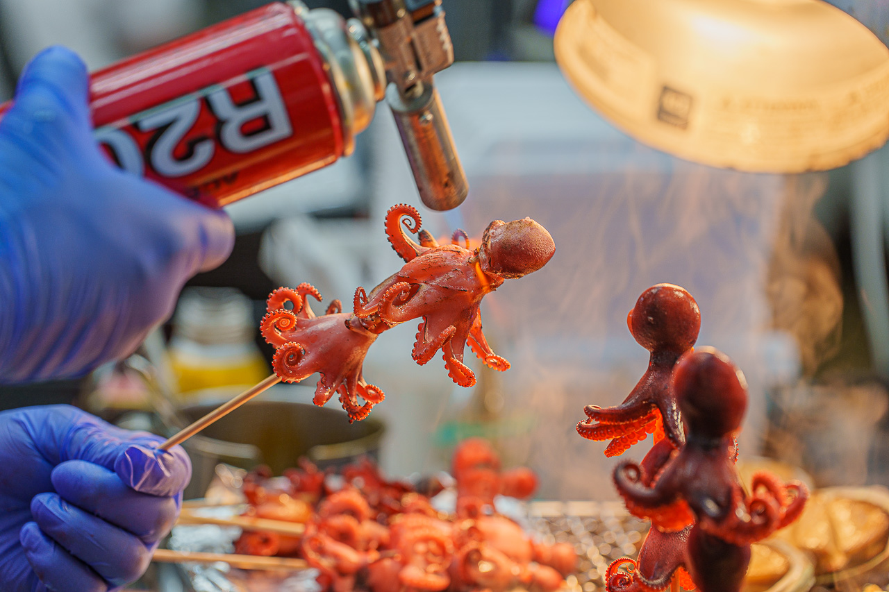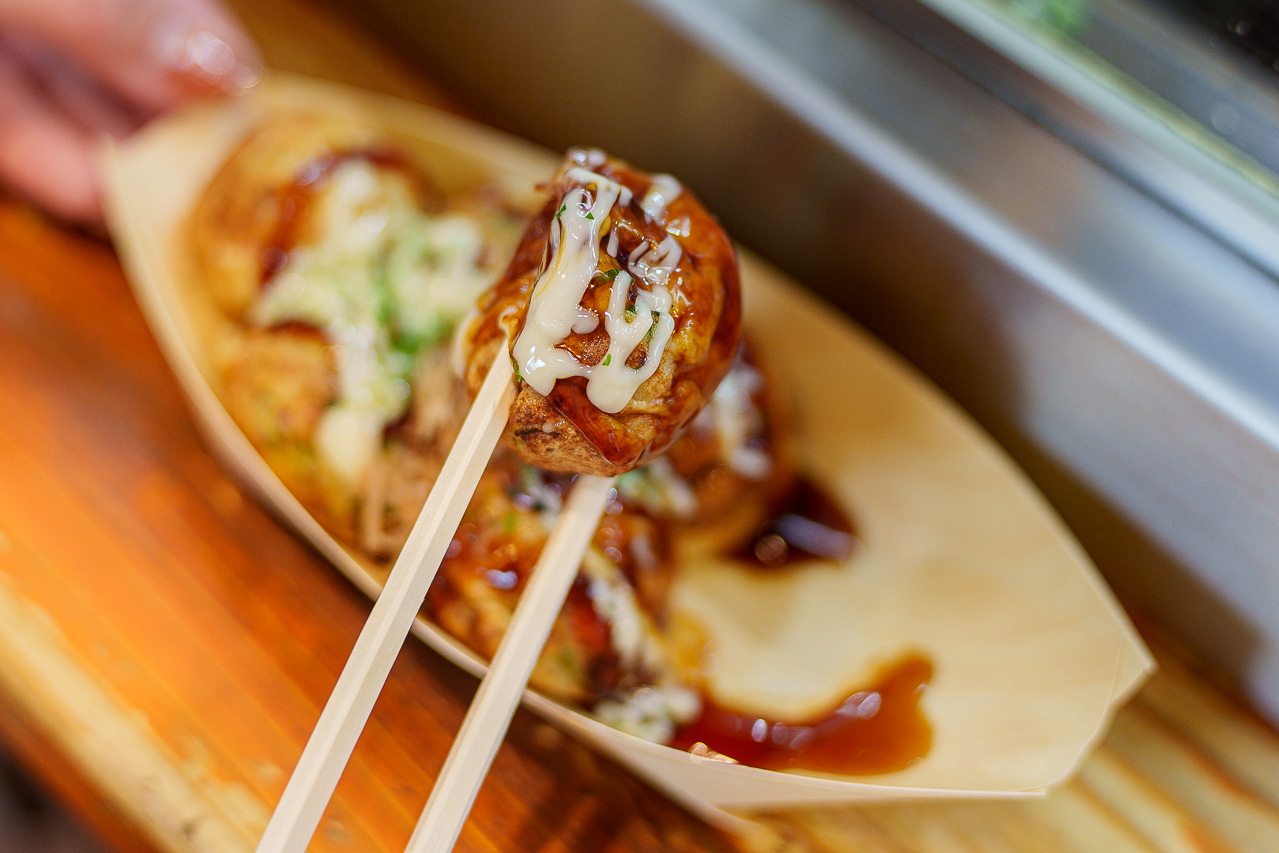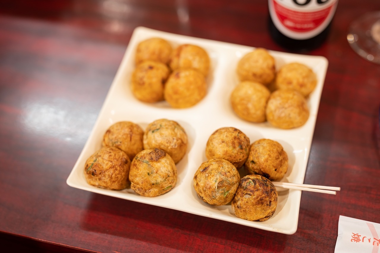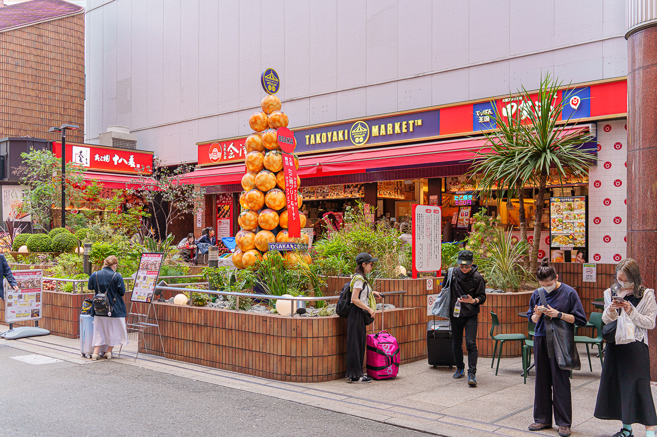 오사카 유명 관광지인 햅파이브에 오사카의 유명한 다코야키 가게들이 총집합! 르세라핌도 다녀간 타코야키 집을 포함 2023년 8월 기준 아베노 타코야키 야마짱(あべのたこ焼きやまちゃん), 타코바루 도톤보리 쿠쿠루(タコバル道頓堀くくる), 타코야키 쥬하치방(たこ焼き十八番), 타코야키 발상지의 가게 아이즈야(だこ焼き発祥の店 会津屋), 아메리칸무라 코가류(アメリカン村古賀流) 총 5개의 가게가 모여 있다. 100석이 넘는 좌석이 있어 기다리는 시간이 적을 뿐 아니라 각지의 타코야키도 맛볼 수 있어 맛 비교하기에도 정말 좋다. 특히 콘텐츠 제작자들은 여기에서 오사카의 타코야키 비교 영상을 만들어도 좋을 정도.