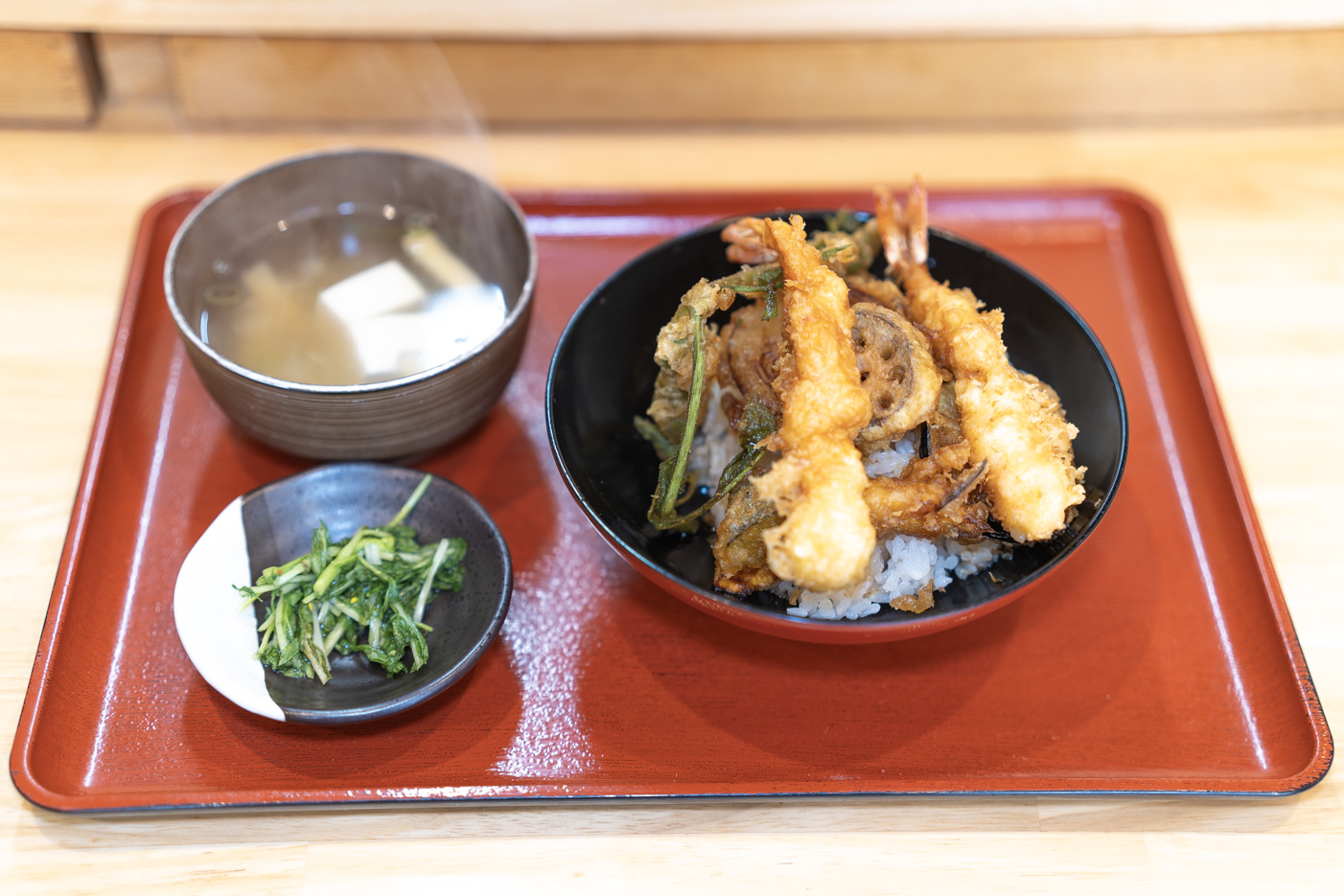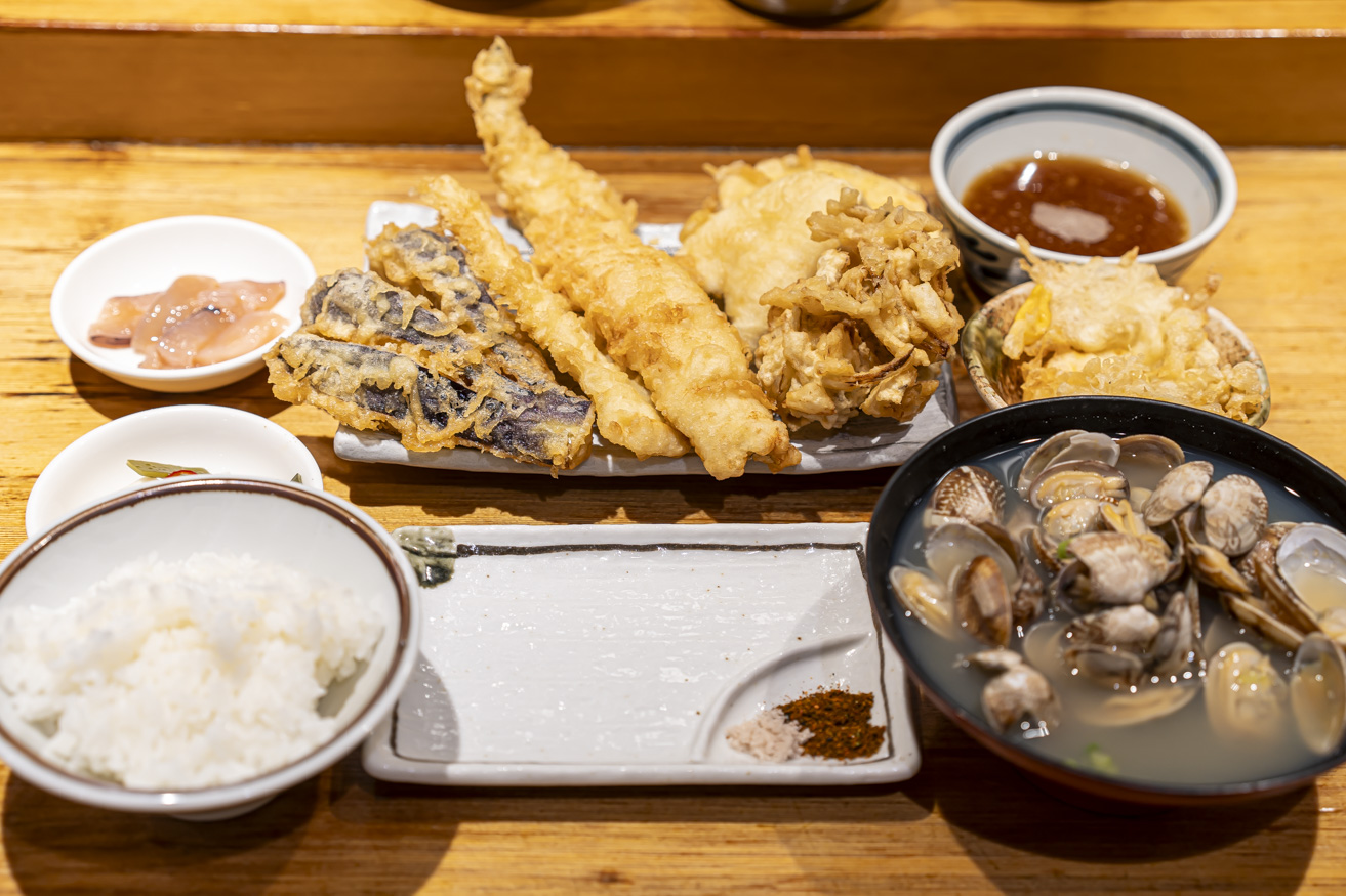오사카 다이코쿠쵸 역 인근 "덴푸라야상"은 가성비 뛰어난 텐동 전문점이다. 매일 점심 특선으로 제공되는 텐동 세트는 700엔이라는 저렴한 가격이 특징이다. 즉석에서 튀겨내는 새우와 채소 튀김은 라이브 키친에서 바로 확인할 수 있다. 혼밥이 가능한 카운터석과 함께 무료 보리차, 추가 주문 가능한 된장국도 마련돼 있다.