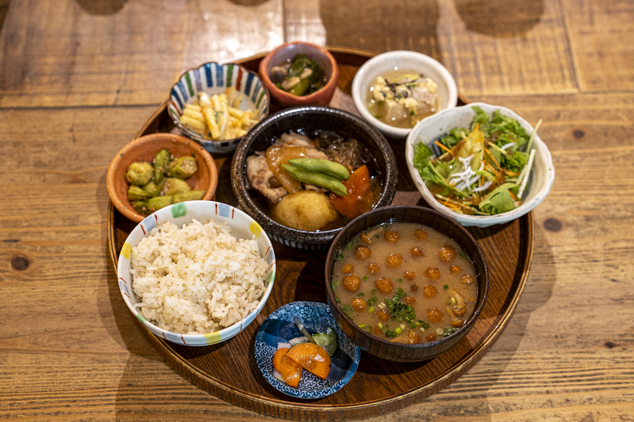 카야쿠고항이 유명한 오반자이 전문점(교토 가정식) 다이코쿠. 120년이 넘는 역사로 미슐랭에 등재된 가정식 맛집. 밥과 국, 반찬까지 전부 단품으로 주문해야 하는 시스템으로 관광객 보단 현지인들에게 유명한 가게. 400엔에서 700엔까지 하는 단품메뉴를 취향대로 주문해서 시킬 수 있다. 유명 메뉴는 "가자미조림"과 "카야쿠 고항" 한국어 메뉴도 있어 주문하기 편리하다. 가정식에 비해서는 좀 비싼 편이지만 자극적인 오사카 음식들 사이에서 오아시스 같은 존재.