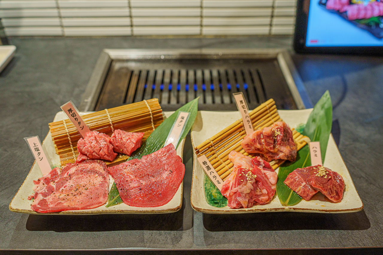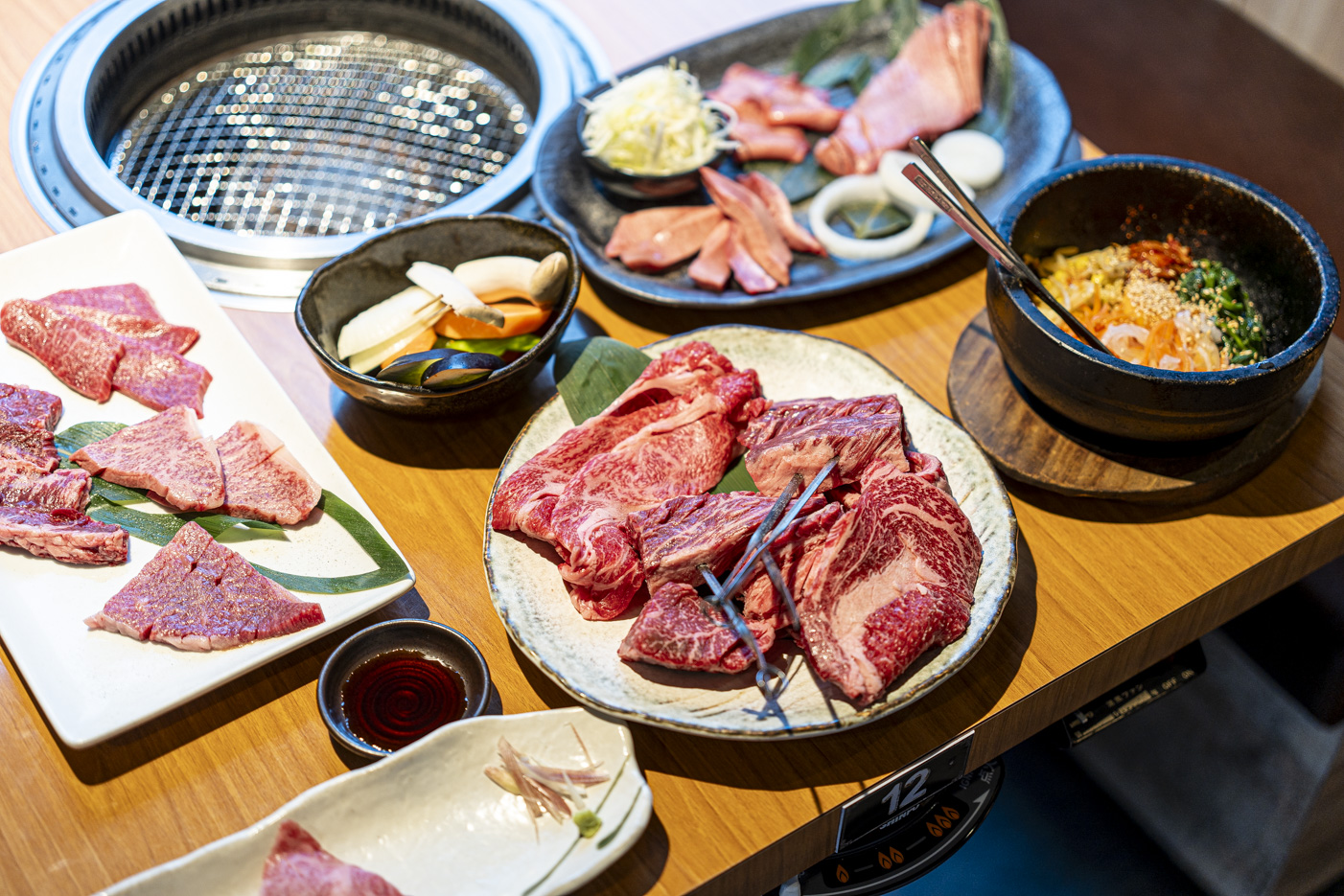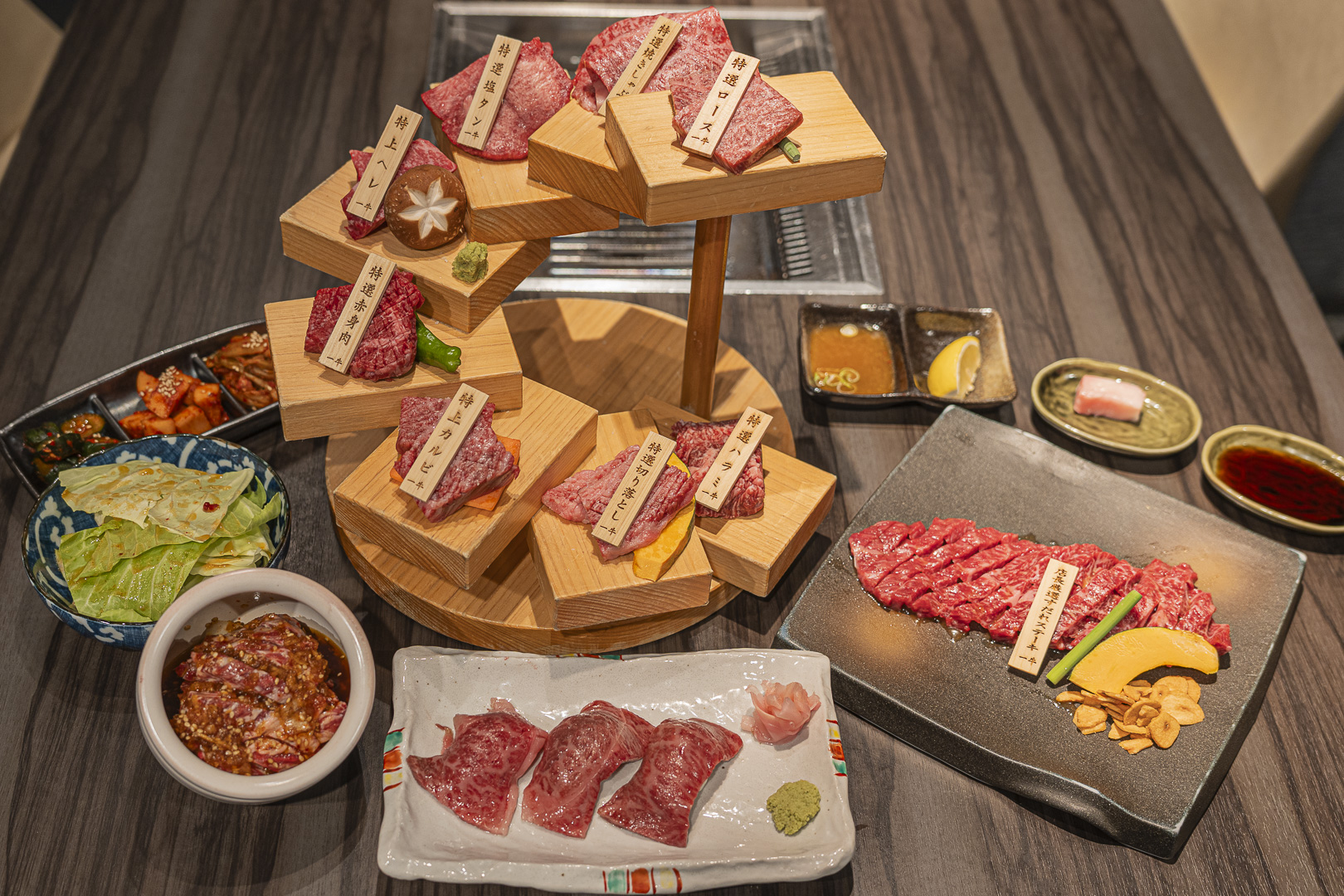 오사카에서 인기 야키니쿠점의 분점으로, 요즘 유행하는 ‘계단식 와규’를 합리적인 가격에 즐길 수 있는 곳이다. A5 등급 흑털와규 암소만을 사용한 8단 계단 모둠(10,978엔)은 다양한 부위를 한 번에 경험할 수 있는 구성이며, 직원이 첫 고기를 직접 구워줘 최적의 타이밍과 식감을 안내해준다. 수량 한정 스다레 스테이크(3,278엔)와 흑모와규 아부리 니기리(3피스 1,650엔), 항아리 데카 하라미도 함께 즐기면 완성도가 높다.