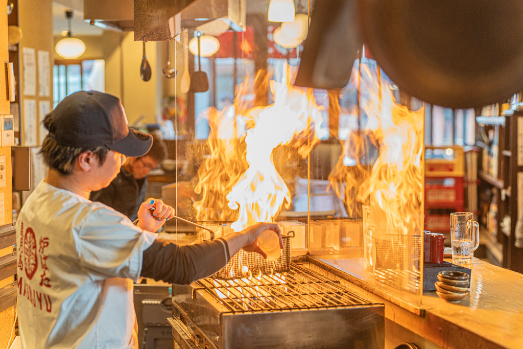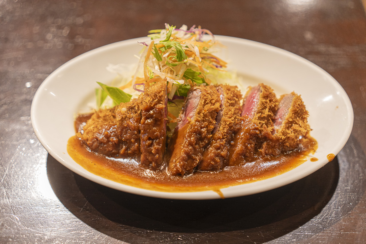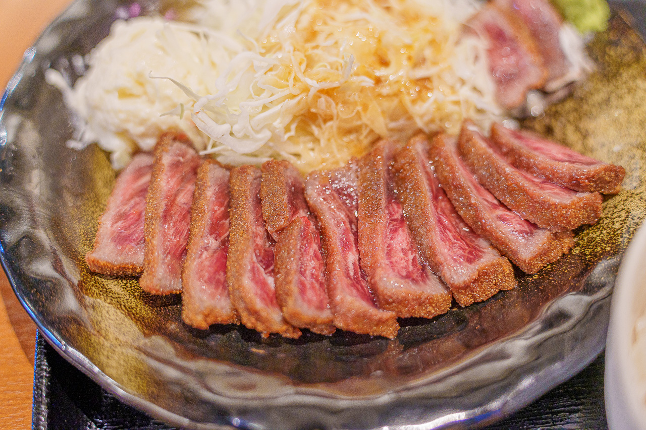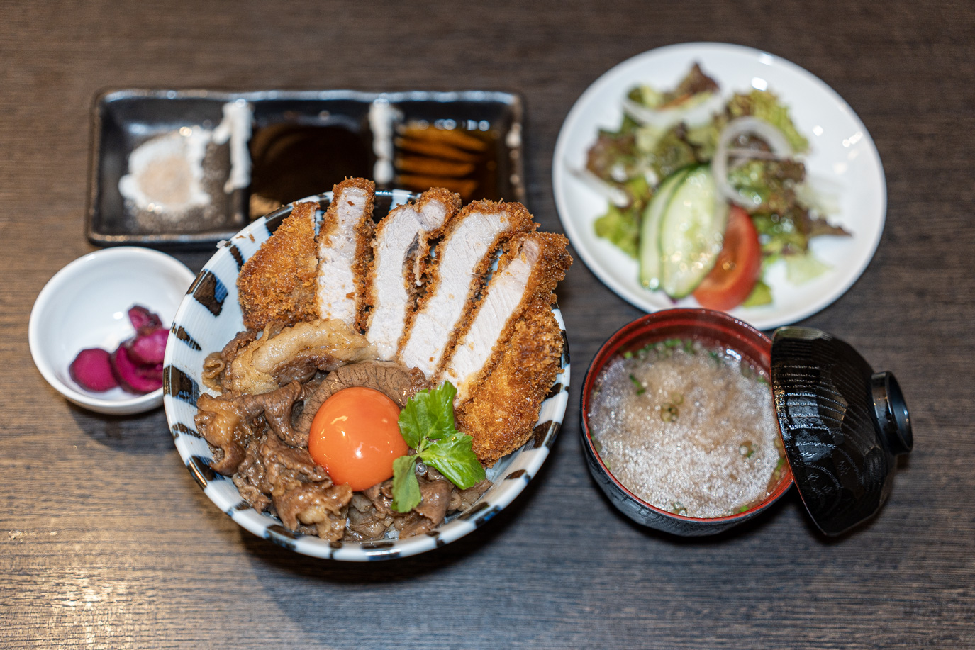 이곳은 20일 이상 숙성한 와규와 가고시마산 마오우 돼지고기를 사용한 돈카츠 전문점으로, 깊은 감칠맛과 바삭한 식감을 동시에 즐길 수 있다. 와규를 조린 소고기와 바삭한 돈카츠가 함께 올라간 신생 카츠동(2,300엔) 은 겉바속촉 식감과 육즙이 조화를 이루며 오픈 키친에서 펼쳐지는 파이어 쇼와 큼직한 고기 덩어리가 등장하는 연출까지 더해져, 맛과 볼거리를 동시에 즐길 수 있는 곳이다. 외국인을 노린 가게가 아닐까 싶은 곳.