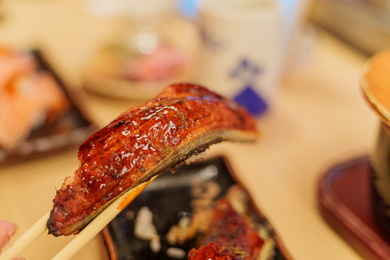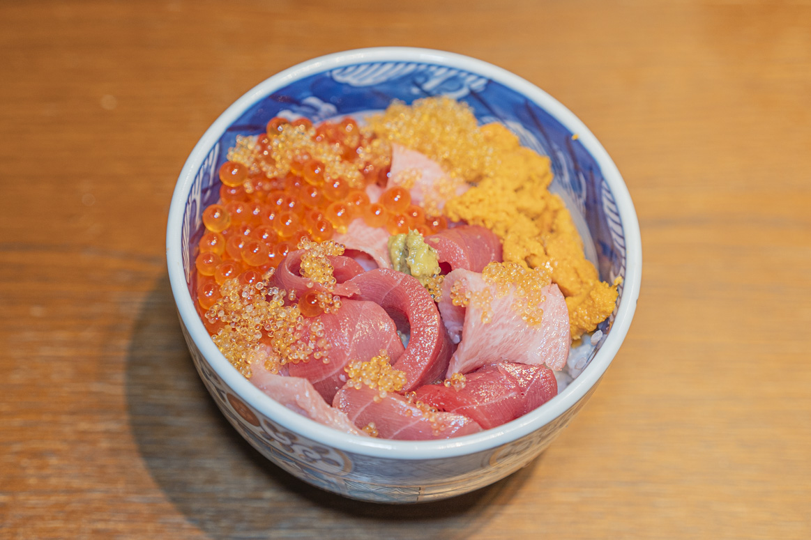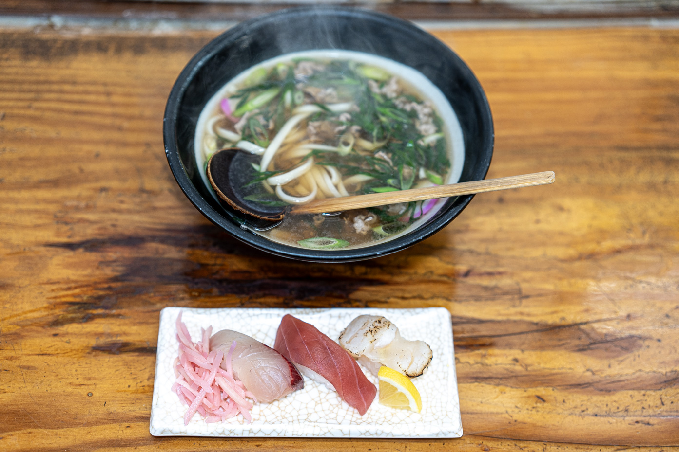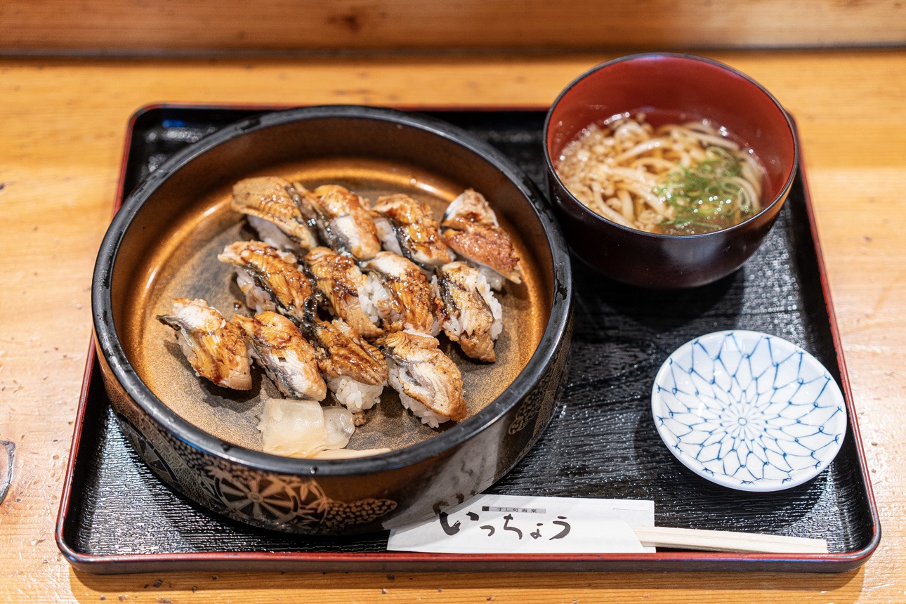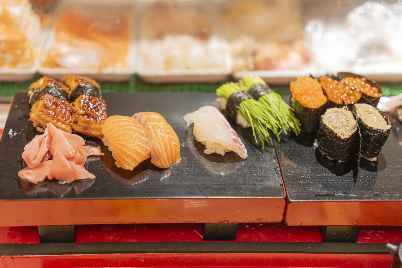 싱싱한 생선을 그 자리에서 우아하게 가성비 최고 상태로 스시를 제공하는 "원조 붓치기레 우오신" 일반초밥의 3배 정도 크기의 임팩트를 가진 초밥으로 흘러넘칠 정도의 재료가 인상적인 곳이다. 붓치기레라는 뜻은 "엄청나게 잘"이라는 뜻도 있지만 여기서는 엄청나게 크게 자른다고 해서 붙여진 이름. 특히 장어 초밥이 인상적인데 2개에 1,000엔으로 매우 저렴하다. 다른 건 몰라도 이 집에 가면 장어와 연어는 꼭 먹어보자.
