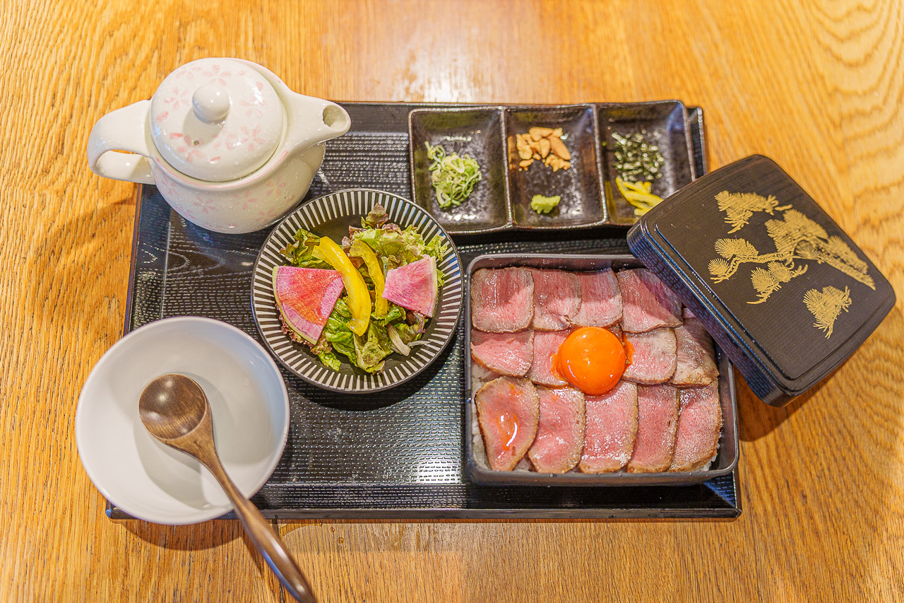 난바 근처에 위치한 고즈넉한 거리 "호젠지 요코초"에 위치한 와규 전문점. 특히 점심 특선이 가성비가 좋은데 추천은 검은소 숙성 스테이크 & 스키야키 덮밥이 1,580엔. 와규를 듬뿍 먹고 싶다면 검은소 숙성 와규 스테이크 덮밥을 추천 2,080엔. 숙성된 와규로 기름기가 적고 부드러운 살코기가 특징. 스키야키는 입안에서 녹아버리는 맛. 가게 분위기도 고급 레스토랑 같이 중후하다. 곧 사람들이 줄 설거 같은 맛집