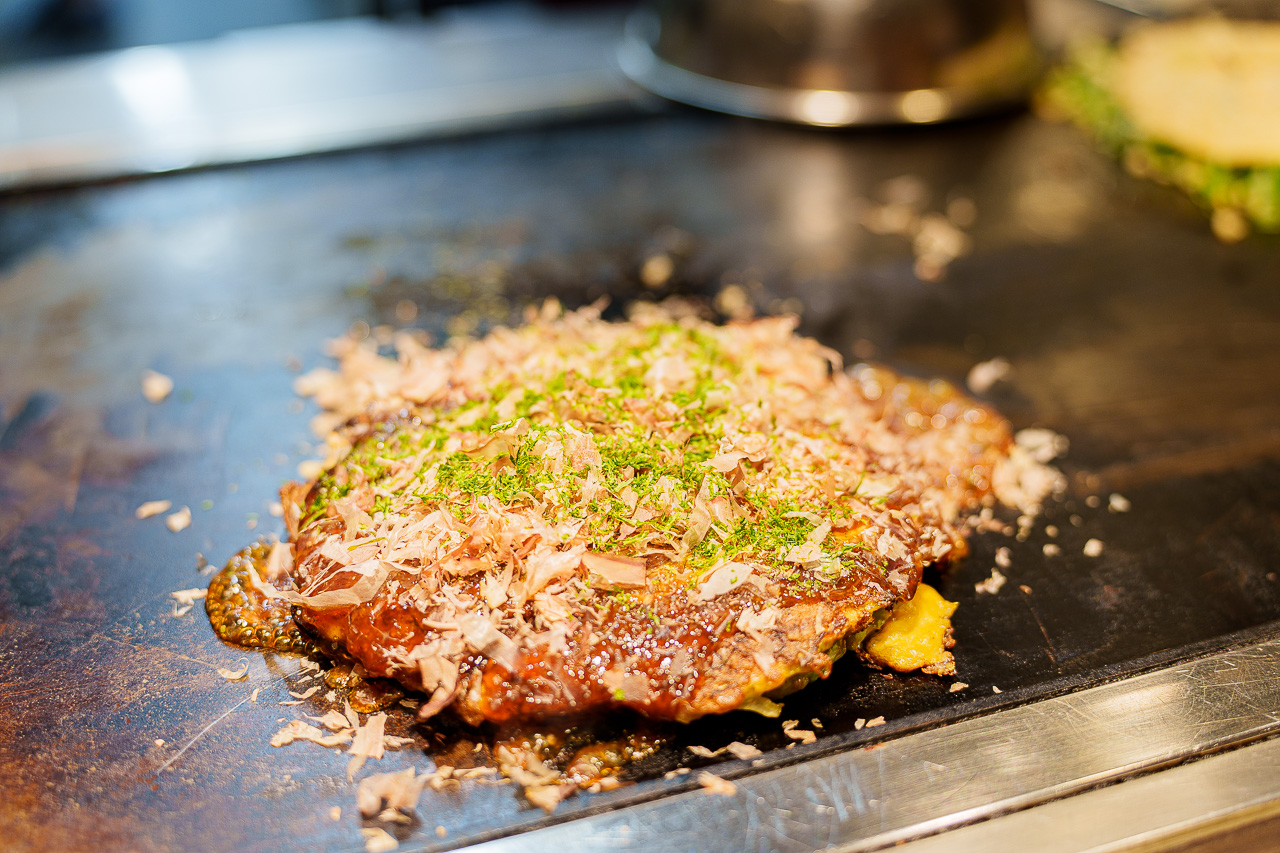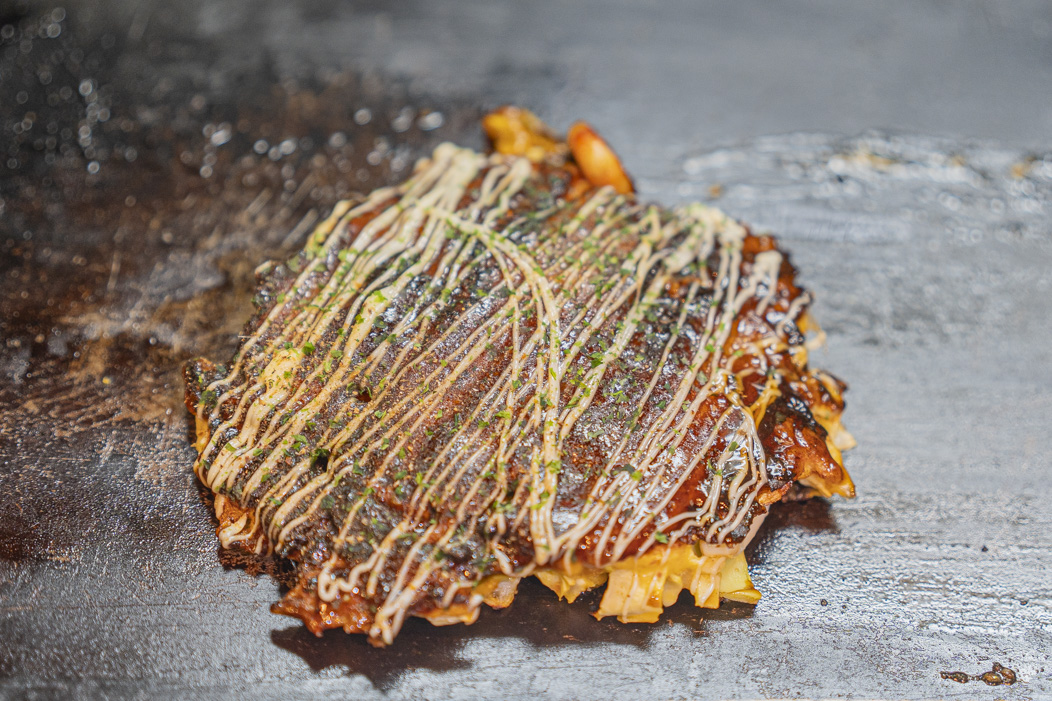 오사카 난바에 있는 전통 있는 가게의 오코노미야키 가게 아지노야. 창업은 1965년으로 부모와 자녀 4대가 계승하고 있다. 아지노야의 오코노미야키는 양배추 듬뿍, 밀가루가 적은 편으로 부드러운 식감이 특징이다. 오코노미야키의 맛의 90%를 책임지는 소스도 직접 만든다. 일본 유명 음식 사이트 타베로그 오코노미야키 100선에도 선출되어 많은 팬들의 사랑을 받고 있다. 추천 메뉴는 스페셜 믹스 인분 2,750엔과 아지노야 믹스 1.5인분 1,430엔.