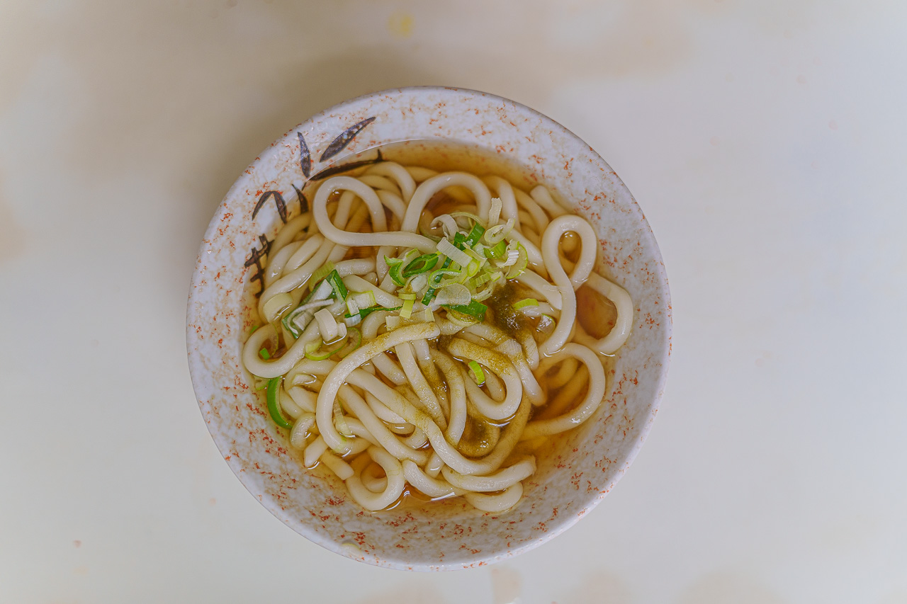 오사카 신세카이의 츠텐카쿠 바로 아래에 간판도 안내판도 없는 이름 없는 가게 미요시 가락국수. 현지 로컬 아저씨들이 줄 서서 먹는 가게로 170엔의 저렴한 가격이 인기다. 진짜 드라마에서나 보던 일본의 오래된 노포 같은 느낌으로 의자가 없는 것도 흥미롭다. 특별하게 맛있는 가락국수는 아니지만 뭔가 맛있어서 국물까지 다 마시게 되는 가게. 영업시간은 9시부터 15시까지로 점심시간만 잠깐 영업하니 주의