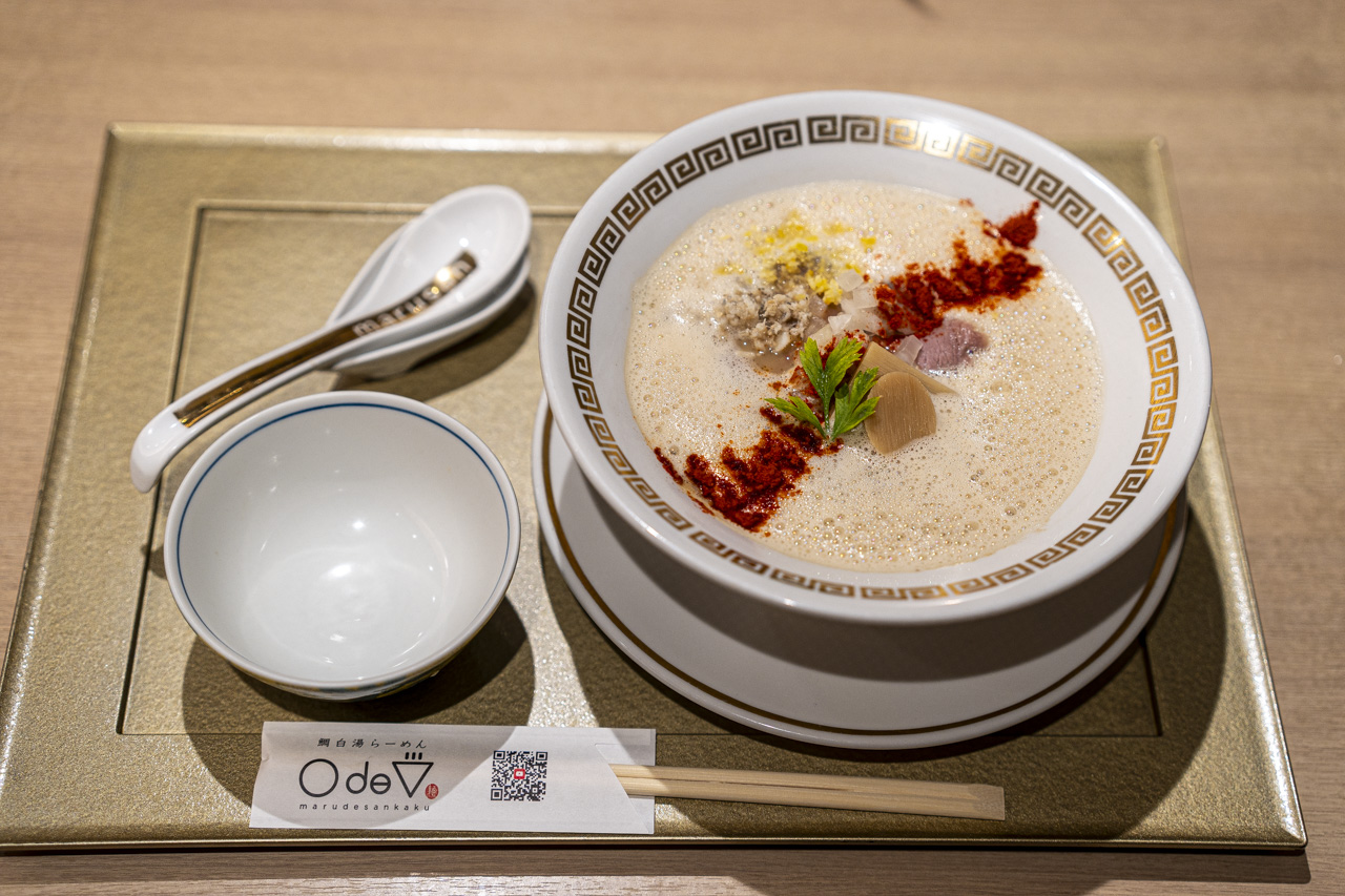 오사카 옆 동네 나라에서 유명한 라멘 맛집. 매일 줄을 서는 유명 맛집이 오사카에도 상륙했다. 종류는 돈코츠 라멘으로 거품이 가득하여 카푸치노 라멘이라고도 불리는 종류다. 덴노지역의 "아베노"지역 지하 1층에 있는 'Hoop DINING COURT'에 위치해 있다. 기본 맛은 "소금"과 "간장" 두 종류. 그리고 츠케멘이 있다. 소금 라멘의 특징은 6종류의 소금을 블렌딩. 완자와 다시마를 듬뿍 사용하여 만들어진다. 진한 돈코츠 라멘을 좋아한다면 꼭 한번 먹어보라고 추천할 맛집.