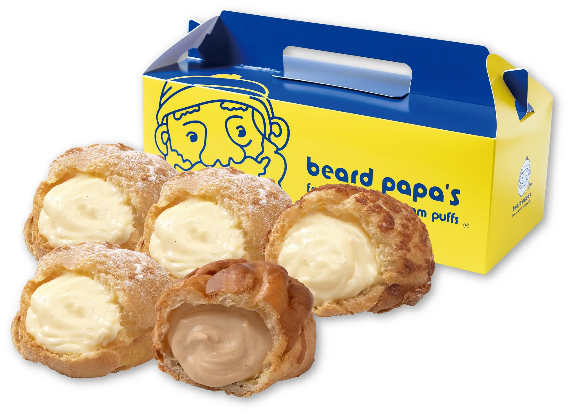 "비어드 파파"는 오사카 전역에서 만날 수 있는 슈크림빵 전문 체인이다. 주문 즉시 크림을 채워 넣는 방식으로, 언제나 신선한 상태의 빵을 제공한다. 겉은 바삭한 파이슈, 속은 부드러운 커스터드 크림이 특징이다. 기본 파이슈 외에 쿠키슈, 밀피유 슈 등 다양한 종류가 있다. 가볍게 테이크아웃하기 좋아 여행 중 간식이나 기념 간식으로 추천된다.