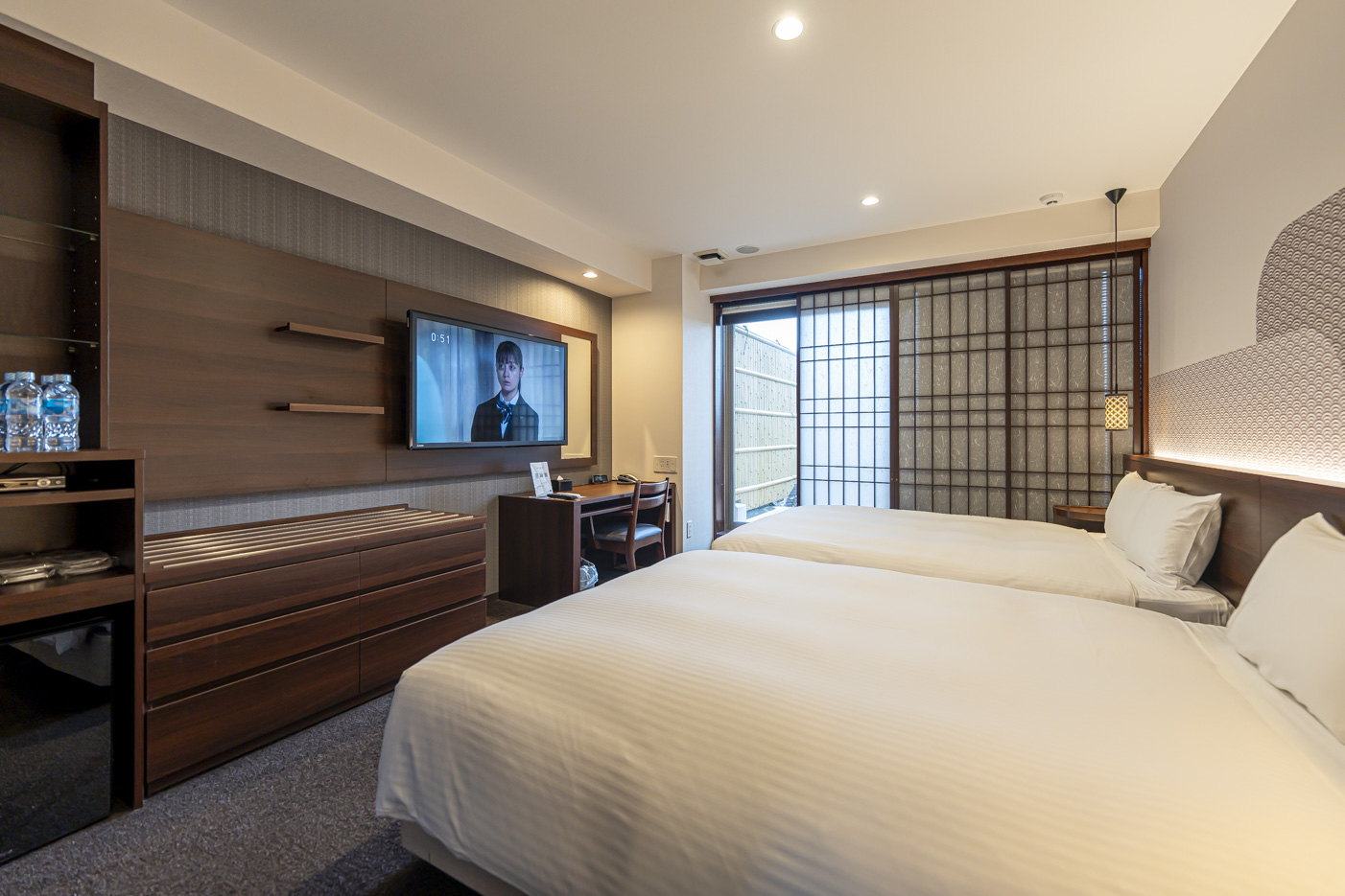 교토 시조 오미야역에서 도보 30초 거리에 있는 "홉 인 교토 시조 오미야"는 합리적인 가격과 편리한 접근성을 자랑하는 신상 호텔이다. 다양한 룸 타입을 갖춰 싱글부터 가족용까지 선택의 폭이 넓으며, 료칸 느낌을 살린 정원이 있는 디럭스룸도 인기다. 50여 가지의 일본식 조식 뷔페와 로비에서 24시간 무료로 제공되는 커피, 대욕장 등 서비스가 풍부하다. 또한, 세탁기와 건조기가 마련되어 있어 장기 투숙에도 좋다. 도교의 우에노, 아사쿠사, 이이다바시에도 지점이 있다.