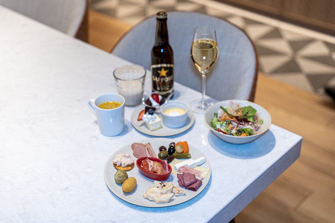 오사카 여행의 상징을 독점할 수 있는 호텔 "크로스호텔 오사카" 객실의 창문으로부터 오사카의 관광 스폿의 하나 "도톤보리 구리코 사인" 이 보이는 방 "DOTONBORI VIEW(6층~13층)"숙박 체재중은 오사카의 관광 스폿을 방으로부터 만끽할 수 있다. 라운지가 있는 플랜에서는 간사이의 식재료를 사용한 메뉴나 토속주나 알코올의 페어링을 15:00-22:00 사이에 즐길 수 있다. 라운지가 없는 플랜이라면 1인당 3300엔으로 라운지가 이용 가능하니 현지에서 선택해도 되다. 로스트 비프와 신선한 야채 파워 샐러드 코너, 오사카의 로컬 푸드 "도테야키"나 "믹스 주스"도 포함한 메뉴의 아침 식사도 만족스럽다.