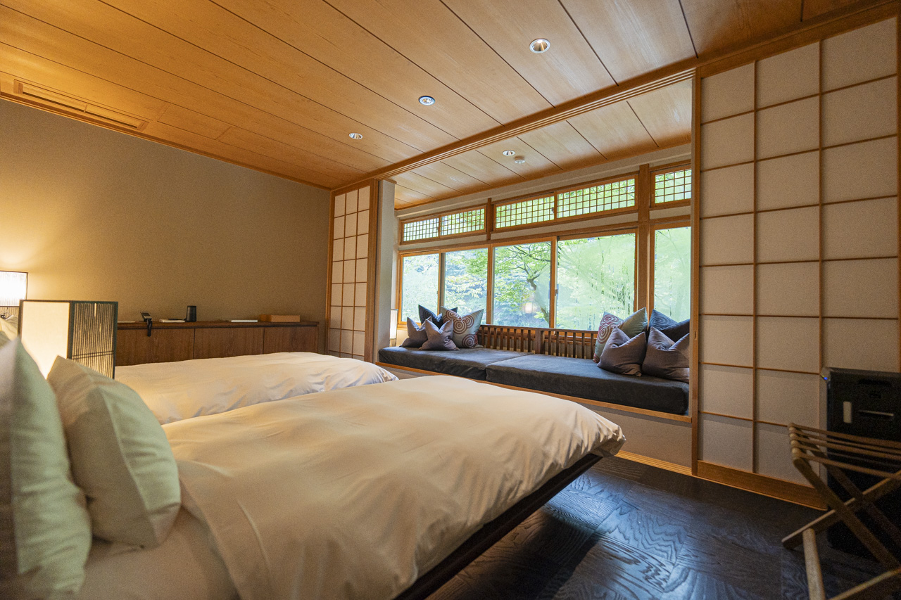 호시노야 교토의 매력은 고요하고 아름다운 자연에 둘러싸인 교토 아라시야마의 깊숙한 곳에 위치하여 계절마다 아름다운 경관을 즐길 수 있다는 점이다. 역사적인 스키야 건축의 건물로 전통과 현대적인 편안함이 조화를 이룯다. 강을 바라보는 객실과 프라이빗 배 이동은 특별한 경험을 제공한다. 또한 지역 재료로 만든 최고급 교요리 가이세키를 맛볼 수 있다.