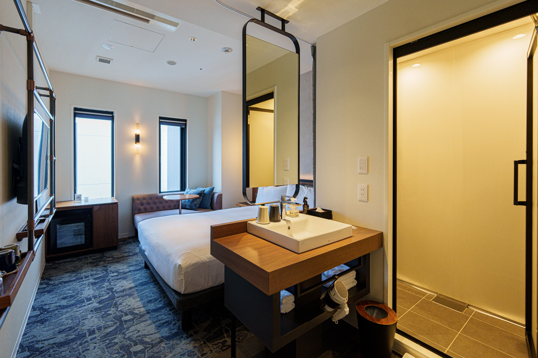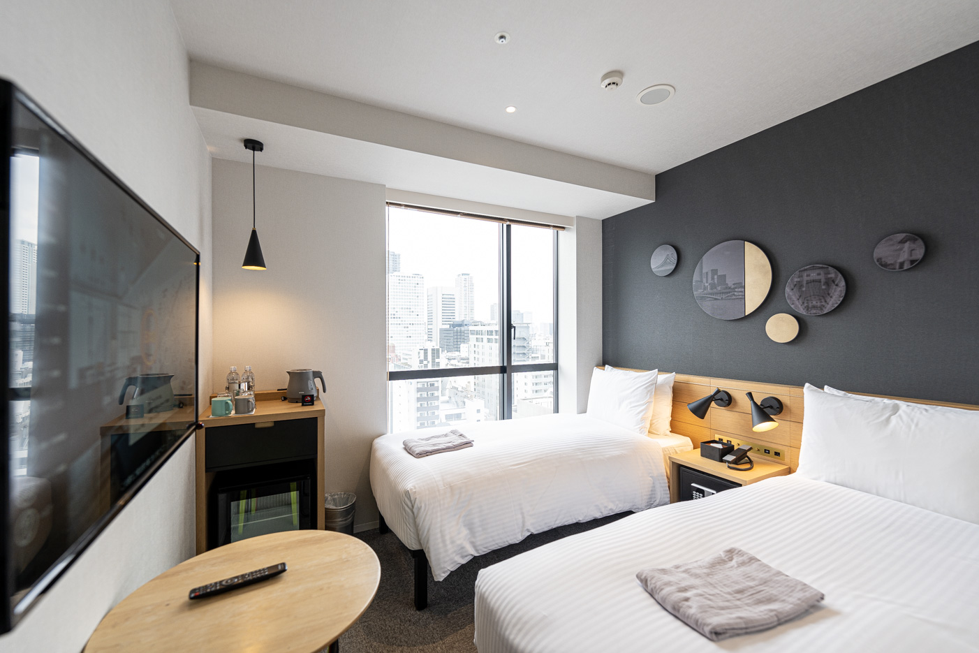 오사카 도톤보리 한복판에 자리한 이 신상 호텔은 2021년 5월 오픈으로, 위치 하나만으로도 선택 이유가 충분하다. 로비는 3층에 있으며 무료 커피와 어메니티 바, 입욕제까지 준비돼 있어 체크인 직후 바로 쉬기 좋다. 객실은 테이블과 소파가 있는 실용적인 구성으로, 창문 너머로 도톤보리 풍경을 내려다볼 수 있다. 조식은 선택 사항(2,800엔)으로 타코야키와 쿠시카츠 등 오사카 소울푸드가 포함되며, 간단한 설문 참여 시 혜택도 제공돼 가성비를 더한다.