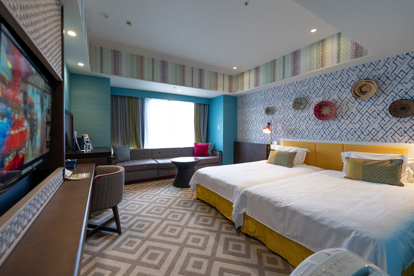 유니버셜 스튜디오 재팬 근처 "호텔 유니버설 포트"는 가족 여행에 최적화된 공식 호텔이다. 로비부터 미니언 테마로 꾸며져 있어 사진 찍기 좋은 공간이 많다. 카리브 슈페리어룸은 바다를 모티브로 한 인테리어와 분리형 세면대로 실용적이다. 조식은 오사카 감성 가득한 메뉴부터 일식, 양식까지 다양하게 구성되어 있다. 놀이공원 방문 전후 머물기에 위치, 편의성, 테마 모두 만족스러운 숙소다.