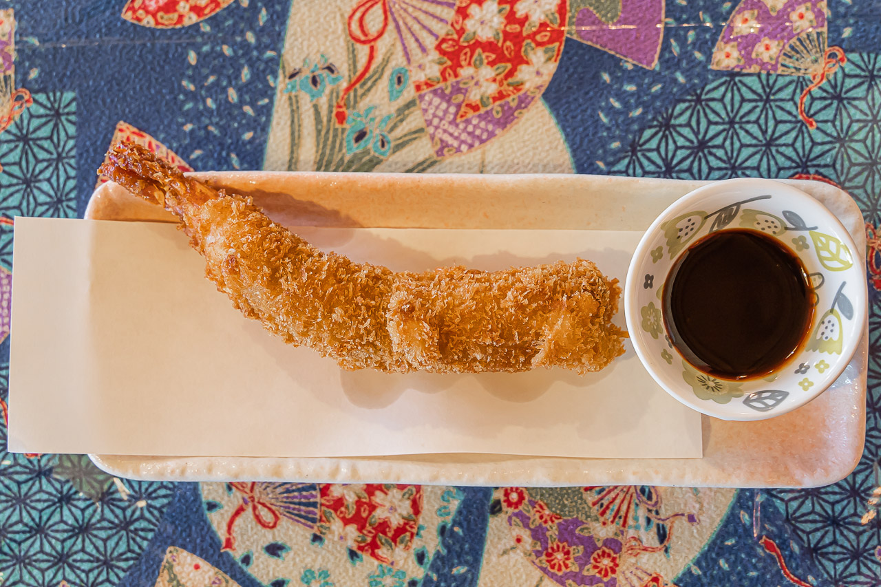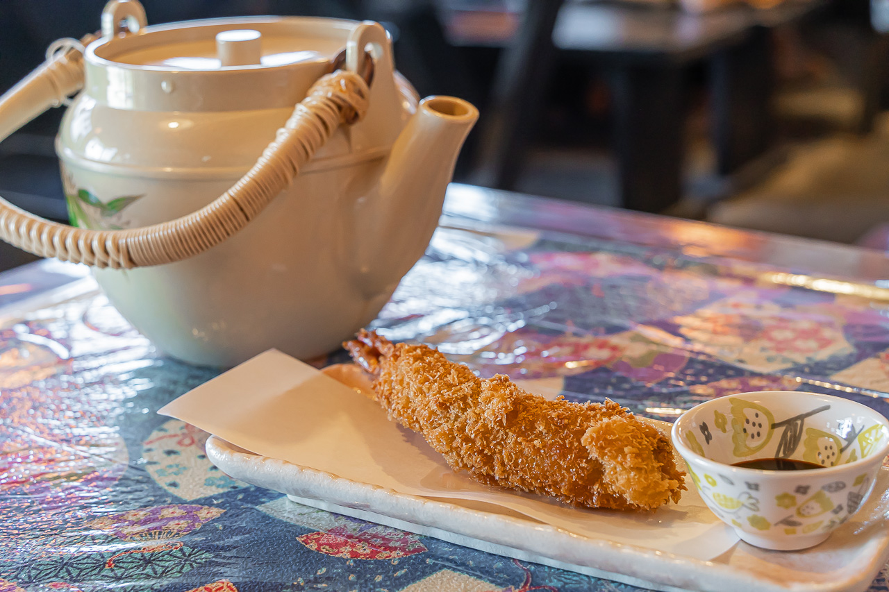 한참을 먹고 있는데 사이드 메뉴로 가게 최고 인기인 "돼지고기 새우튀김" 이 200엔이라는 문구가 눈에 들어옵니다.