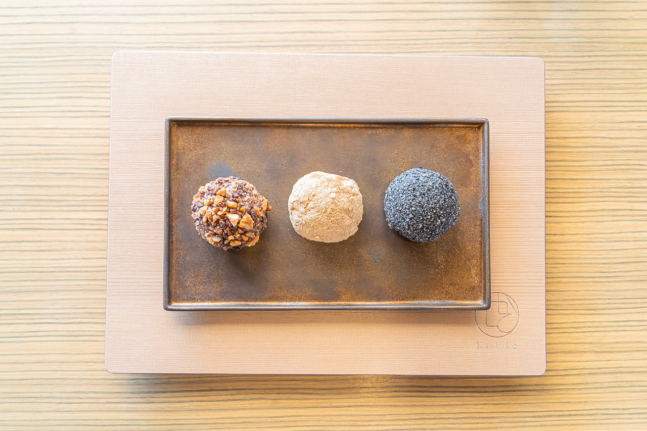왼쪽부터 아몬드 초코, 콩가루, 검은깨 오하기