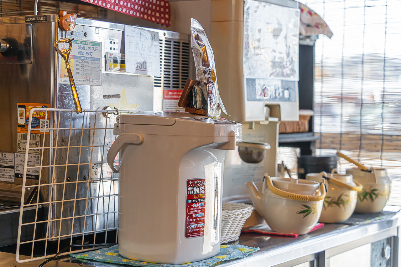 입구에 있던 커피포트에서 다시를 받아 오차즈케를 먹어봅니다.