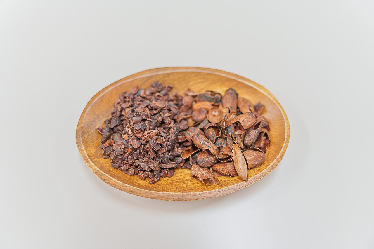 카카오 콩을 일본으로 가져와 세척 및 선별된 카카오 콩을 커피 콩 로스팅과 유사한 과정으로 로스팅한다. 로스팅은 초콜릿의 맛과 향을 더욱 깊게 만들어 준다. 구체적인 로스팅 시간과 온도는 기업 비밀. 로스팅 후에는 원두가 더욱 부서지기 쉽고, 겉 껍질도 제거하기 쉬워진다. 로스팅한 원두는 껍질을 깨뜨려 겉 껍질(껍질)과 속껍질(카카오콩의 식용 가능한 부분)을 분리한다. 이 과정을 키질(winnowing)이라고 한다.