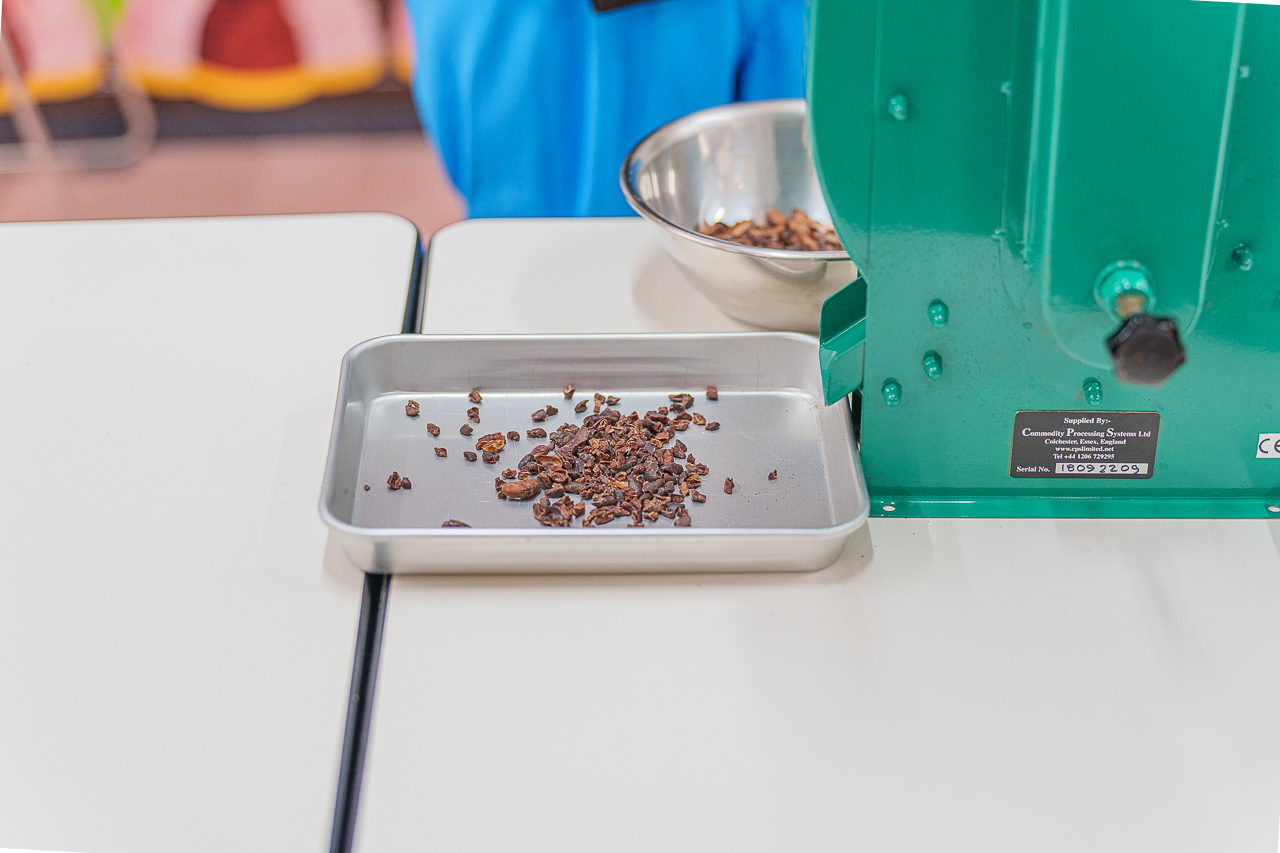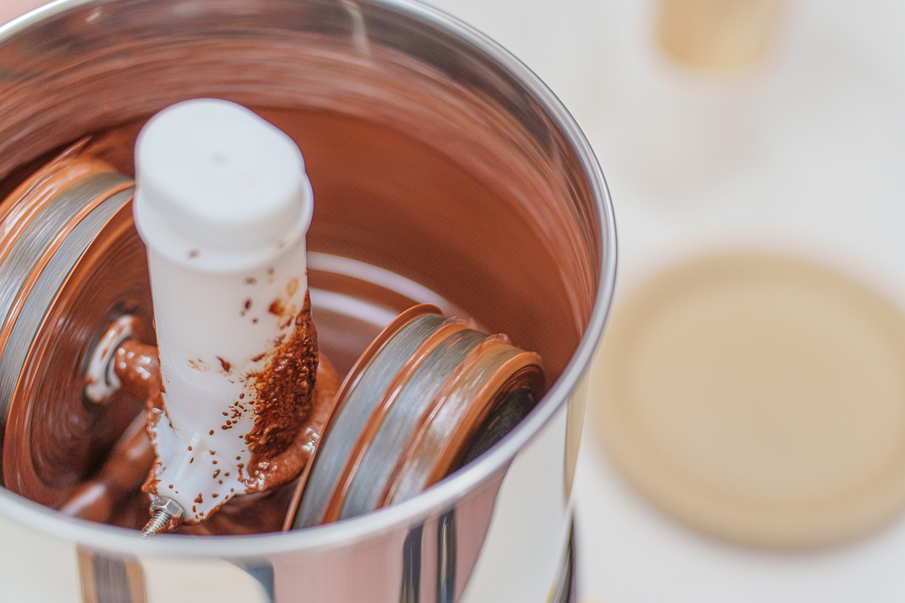 여러가지여러 가지 재료들을 넣어서 곱게 잘 갈아주면 초콜릿이 완성된다. 이 단계에서 밀크 파우더를 넣거나 여러 가지 방법을 통해 밀크 초콜릿을 만들어 낼 수 있다. 금방 만들어진 초콜릿이라 향이 진하고 맛있다.