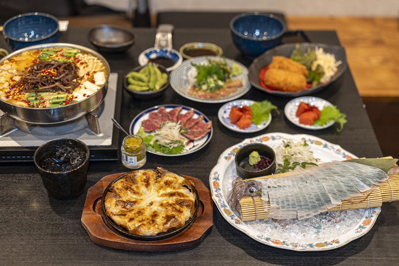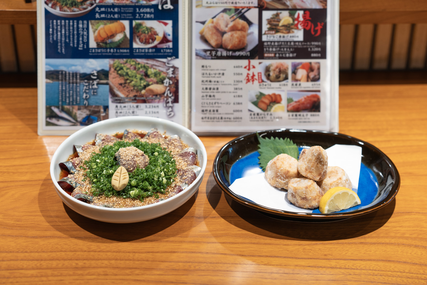 캐널시티 쿠오카 지하 1층 GB19에 위치한 ‘카이센야 하지메노잇포’는 대마도에서 매일 직송된 생고등어를 덮밥으로 즐길 수 있는 귀한 곳이다. 정갈하게 손질된 고등어에 참깨, 파, 와사비, 전용 소스를 곁들여 비주얼과 구성 모두 인상적이다. 그대로 회처럼 먹거나 밥 위에 올려 먹는 것도 좋지만, 진한 아고다시를 부어 즐기는 오차즈케에서 이 집의 진가가 드러난다. 바삭한 겉과 부드러운 속이 조화를 이루는 토란 튀김은 혼술 안주로도 제격이다. 혼자서도 여유롭게 해산물과 따뜻한 한 끼를 즐길 수 있는 정겨운 공간이다.