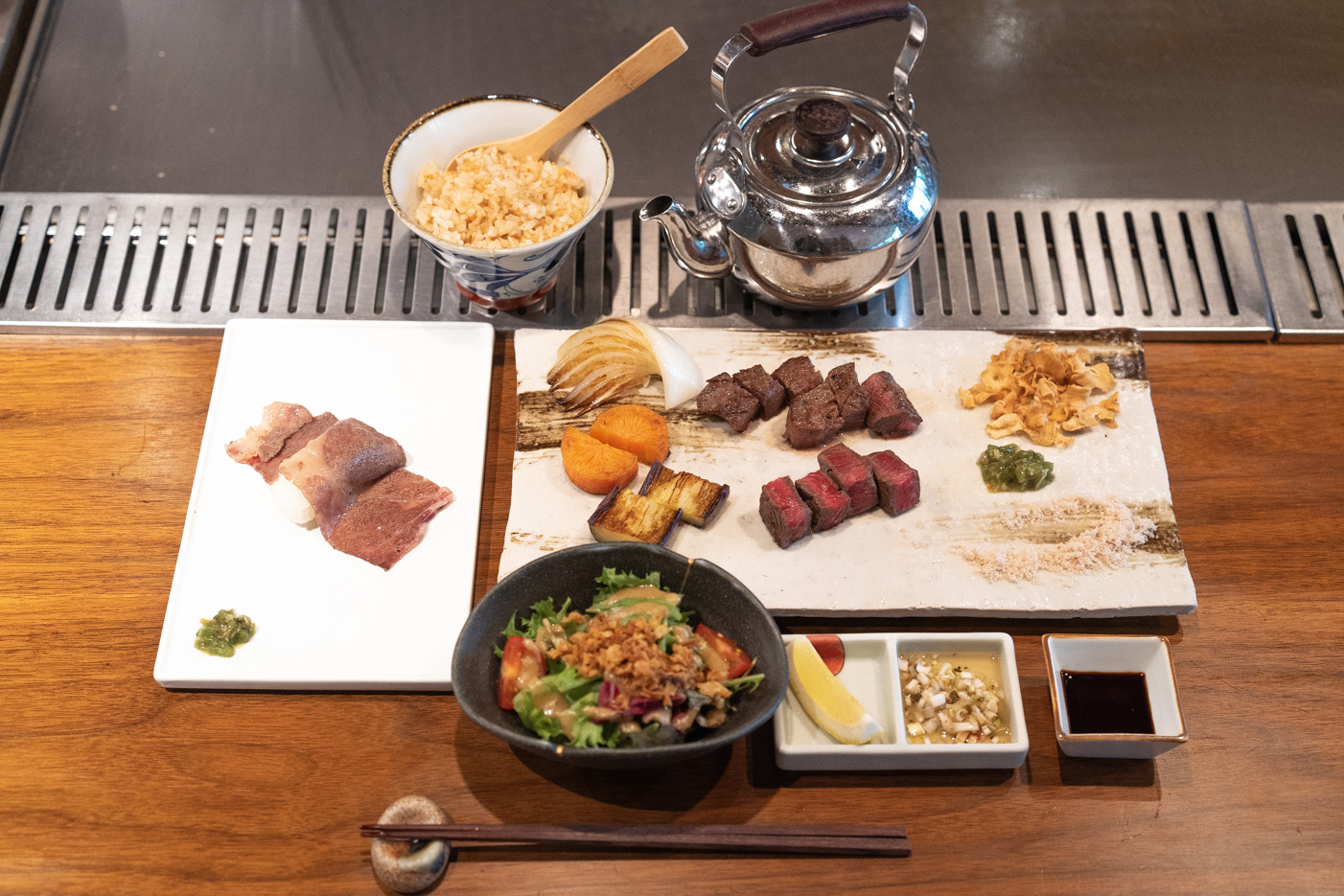 "스테이크하우스 미디움레어 위드더스타일 후쿠오카"가 세련된 분위기의 점심 특선으로 주목받고 있다. 3,800엔 코스에는 흑털 와규 스시, 철판 스테이크, 제철 채소 등이 포함된다. 불향 가득한 고기와 지글지글 구워지는 채소가 미식 경험을 더한다. 식사의 마무리는 갈릭라이스 또는 갓 지은 흰쌀밥 중 선택 가능하다. 하카타역에서 도보 5분 거리에 위치해 접근성도 뛰어나다.
