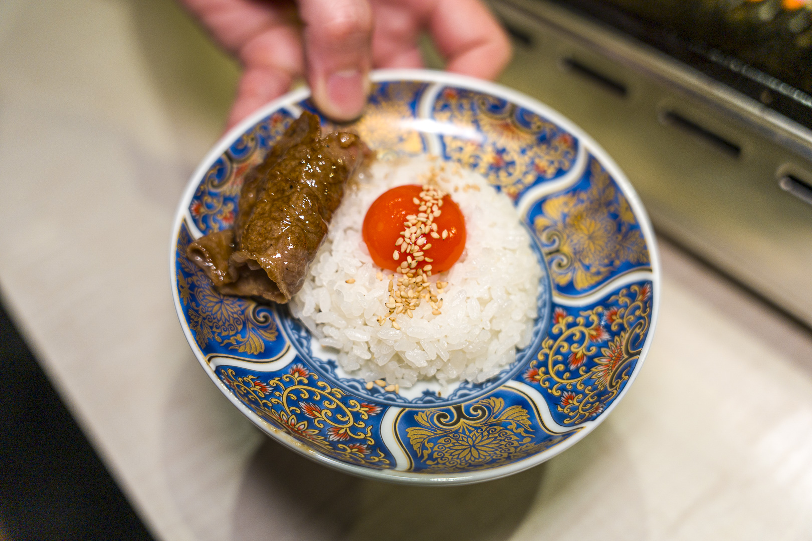 텐진 다이묘 거리의 텐푸라 맛집 텐푸라 히라오의 바로 옆 가게. 아마 사람들이 잘 몰라서 아직 안가고 있는 가게로 평일 저녁시간인데도 불구하고 웨이팅 없이 입장이 가능했다. 간단하게 사이드 메뉴를 시켜봤는데 대박. 스키야키 갈비(580엔)과 소갈비 소금 국밥(580)은 양이 많아서 혼밥하기 좋았다. 고기 맛도 궁금해서 야키스키 와규 7종 모듬을 시켜봤는데 고기에 진심인 가게였다. 야키니쿠에 숯불구이는 진리지.