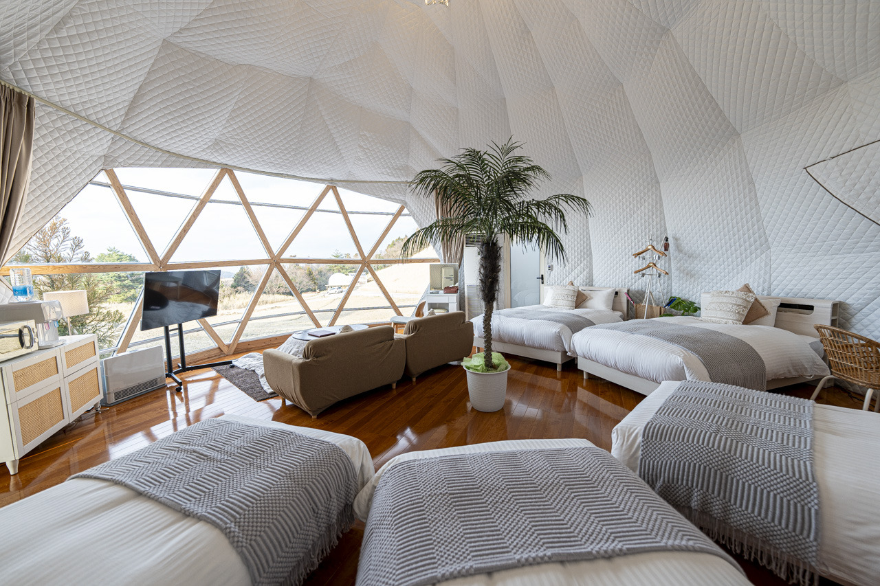 유후인에 와본 한국인이라면 다 아는 금상 고로케 사장님이 운영하는 그랜드 베르데 리조트. 유후인 역에서 차로 15분 거리에 위치. 돔 형태의 글램핑 룸은 고급스러운 시설로 욕조와 화장실이 딸려 있고 정수기와 전자레인지, 무료 음료가 제공된다. 리조트 주변에서는 목장 체험, 버기 운전, 드론 날리기 등의 액티비티를 즐길 수 있다.(대부분 유료) 저녁에는 바비큐로 신선한 와규와 지역 특산물인 닭, 굴, 게다리를 구워 먹을 수 있으며 아침에는 캠핑 세트로 화로에 식빵과 오믈렛을 조리하고 드립 커피를 즐길 수 있다. 체크아웃 시에는 금상 고로케를 먹으면서 유후인의 그맛과 비교해보는 것도 즐겁다.