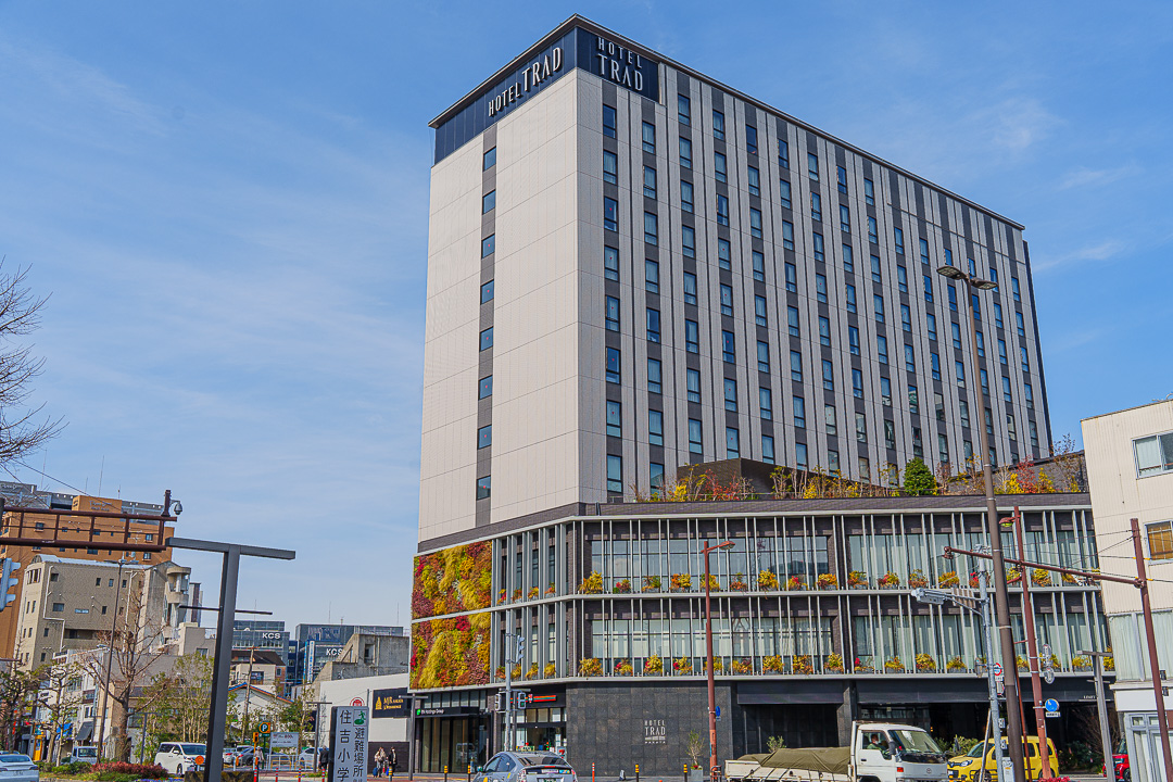 하카타역까지 셔틀 운행되는 스미요시의 신상호텔, ‘호텔 트라드 후쿠오카’. 모던한 객실과 정원, 충실한 어메니티 구성으로 깔끔한 숙박이 가능한 곳. 샤워실과 화장실 분리, 생수 제공, 코인 세탁기 등 기본 편의 시설도 잘 갖춰짐. 조식은 일식과 양식이 다양하게 준비되어 있어 든든한 하루 시작 가능.