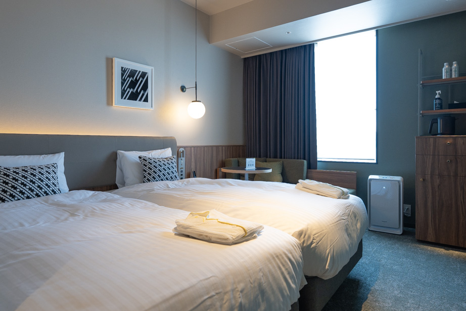 후쿠오카 3호선 나나쿠마선 와타나베도오리 역에서 도보 1분. 슈퍼나 맛있는 음식점, 세련된 카페가 모여 있는 하루요시에 위치해 있고 텐진과도 한 정거장이라 편리하다. 호텔 내부는 신상호텔이지만 생각보다 클래식한데 중세유럽을 테마로 하고 있어서란다. 룸 컨디션으로 킹 베드는 너무 넓어서 4명이서 자도 될 정도. 욕실과 화장실은 일체형인건 좀 아쉽다. 이 호텔의 가장 큰 특징중하나는 지금 일본에서 유행하는 미라브루라고 하는 샤워기를 써볼 수 있는데 써보니 과연 좋은 느낌. 다만 가격이 4만엔 대로 샤워헤드에 40만원 투자하긴 조금 망설여진다. 대욕장과 코인란도리가 있고 조식은 로스트 비프와 카츠샌드와 우나기 세이로무시 등이 나와서 보통 이상은 하는 듯 하다. 가격도 퀄리티에 비해 저렴한것 같다.