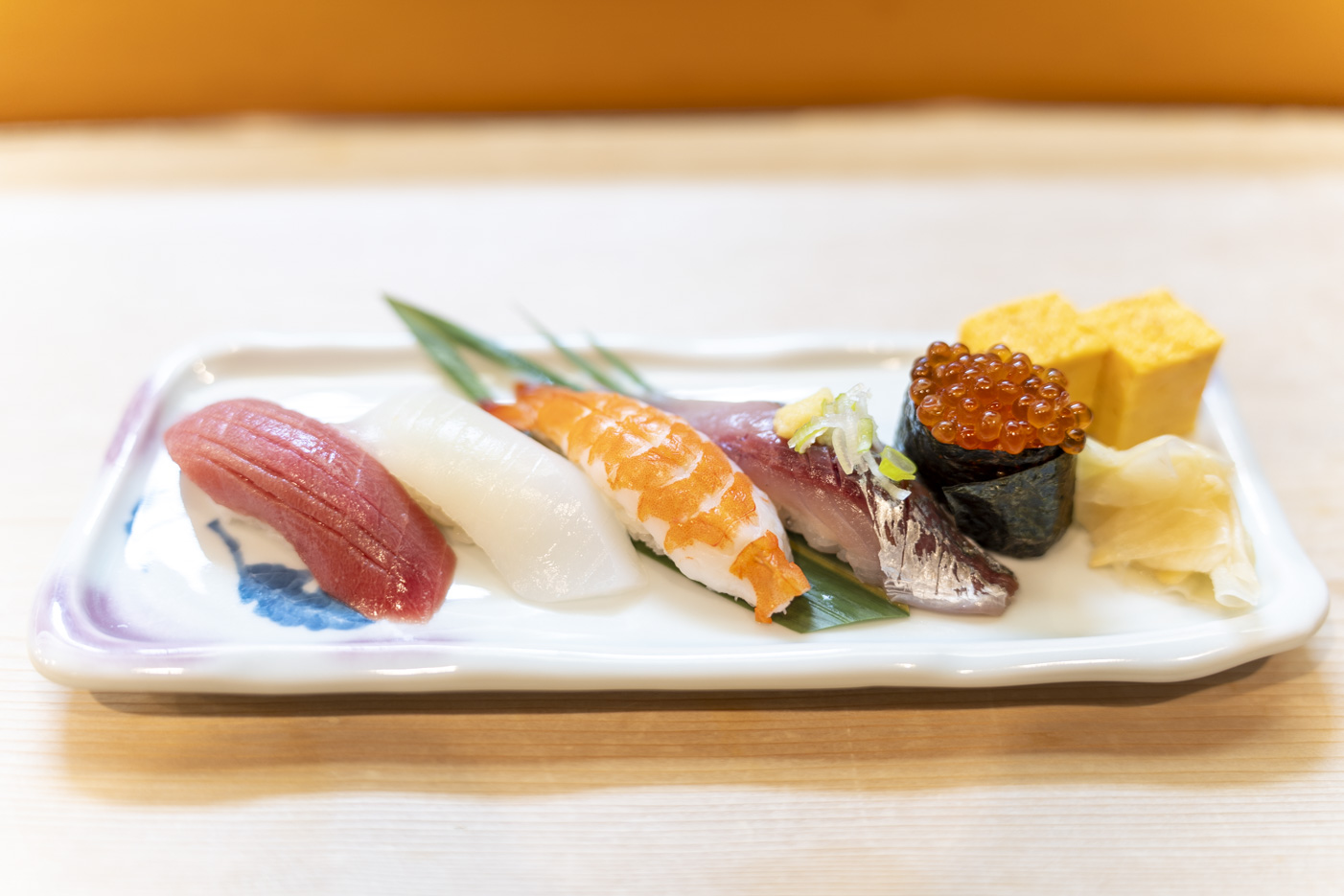아사쿠사의 스시 에이는 긴자에서 현존하는 가장 오래된 에도마에 스시로 알려진 가게에서 갈라져 나온 가게로, 2대째 주인이 전통의 맛을 이어가며 부담 없이 즐길 수 있는 스시를 제공한다. 외관은 다소 고급스럽게 보여 들어가기 어려워 보이지만, 내부에서는 혼자서도 카운터에 앉아 편안하게 식사가 가능하다. 추천 메뉴는 오마카세로 제공되며, 특히 즈케마구로(간장 숙성 참치)나 다시마로 숙성시킨 흰살 생선 등 에도마에 스시 특유의 정성이 담긴 요리를 맛볼 수 있다. 저녁은 살짝 비싼편이기 때문에 점심 특선을 노려보는 것도 좋은 선택