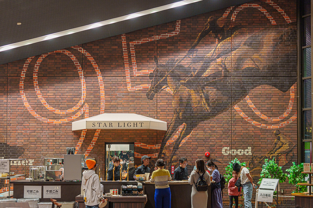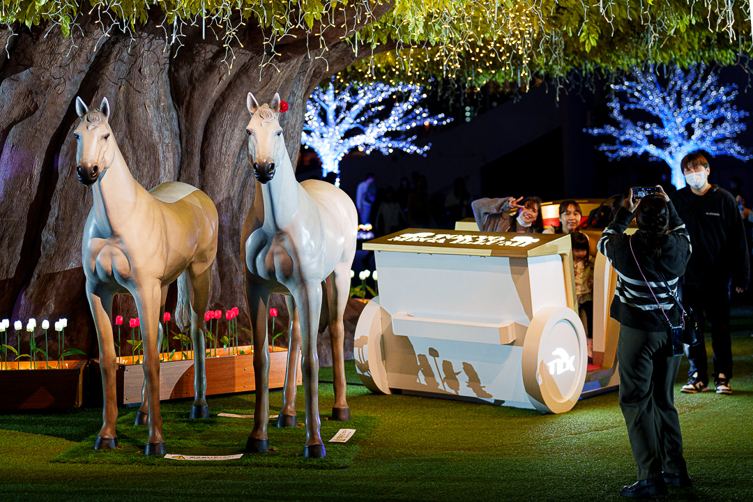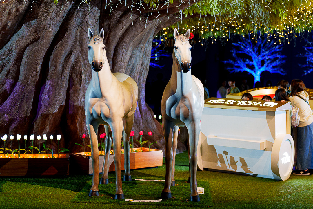 네 마리의 말이 잔디밭과 반짝이는 일루미네이션이 인상적인 잔디 광장. 말과 함께 사진을 찍을 수 있는 곳으로 모형 말이라 안전해서 아이들에게도 기념이 될 수 있는 사진을 찍을 수 있다. 편자형 아치가 걸린 포토 스팟에서 기억에 남는 사진을 남겨보자.