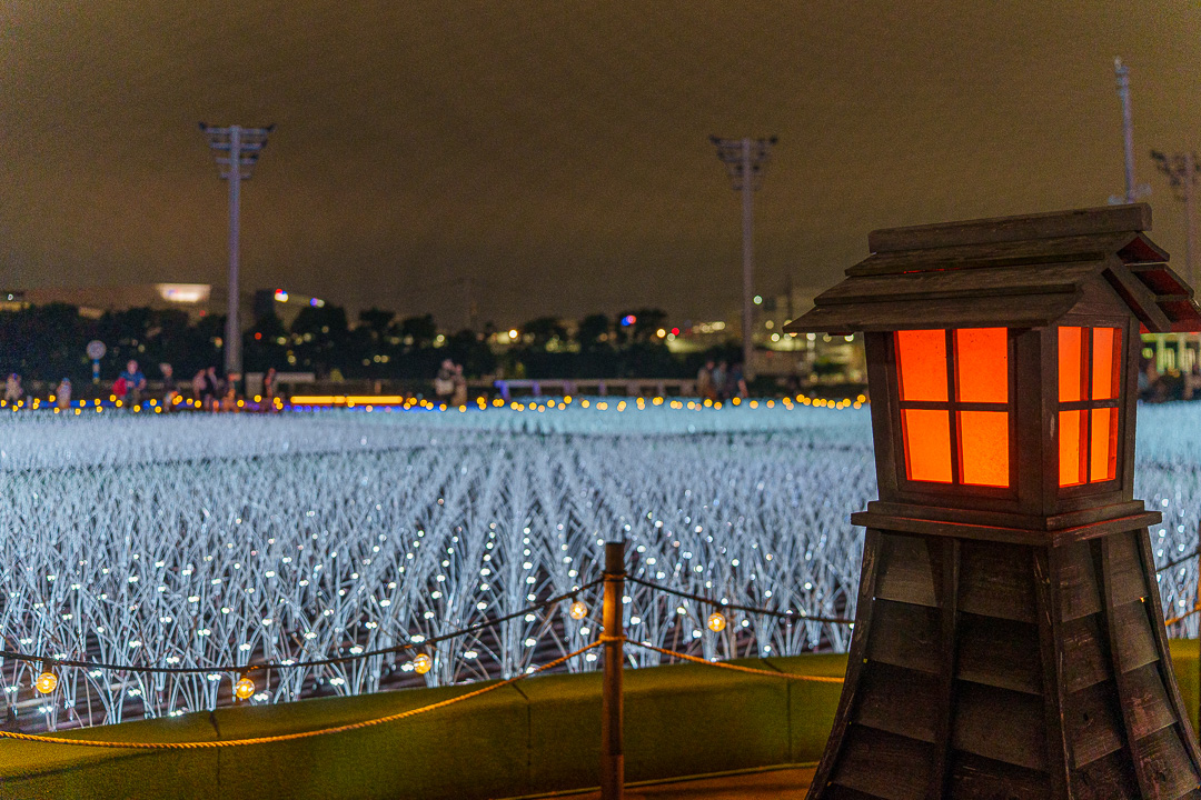 일본의 논 풍경을 일루미네이션으로 담아낸 "니혼겐후케이"(日本原風景) 일본의 마음의 풍경이라고도 하는 전원, 논을 테마로 한 일루미네이션 연출. 유례없는 광대한 스케일로 제작된 일본의 전원 풍경, 일본인들이 좋아하는 풍경이라고는 하지만 쌀 문화에 친숙한 한국인들에게도 어딘가 그리워지는 마음의 풍경을 아름다운 일루미네이션으로 완성했다. 조용하게 심금을 울리는 음악과 최신 기술의 라이트가 빚어내는 새로운 빛의 세계. 이 광경은 여러 가지 색으로 바뀌어 참 아름답다. 초록빛이 당연했던 이 풍경을 여러 가지 빛깔로 느껴보자.