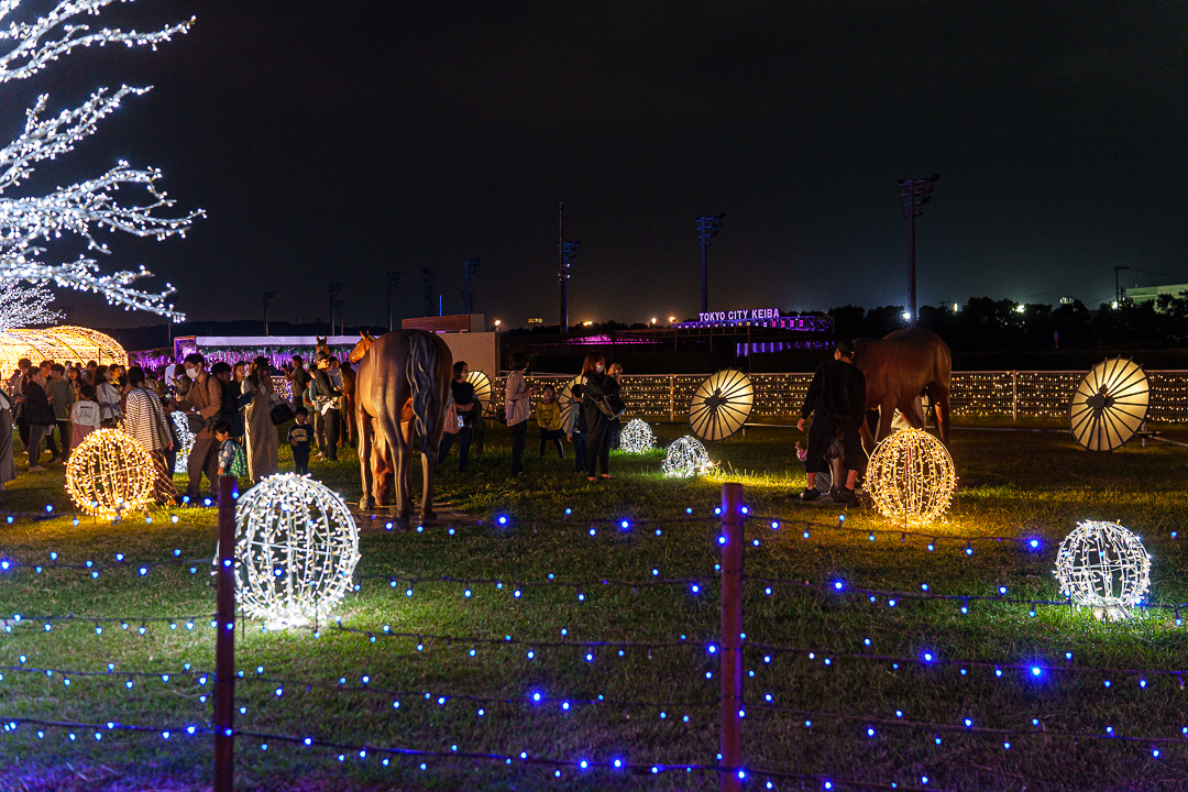 조금 걷다 보면 나오는 "도쿄 메가 일루미네이션(東京メガイルミネーション)" 3년 연속 "일본에서 가장 기대가 되는 일루미네이션 1위"로 선정된 곳으로 2023년 11월 11일부터 시작하여 2023년 1월 8일까지 기간한정으로 일루미네이션이 개최되고 있다. 한국에서는 경마장이라고 하면 어딘가 친숙하지 않은 느낌이지만 일본에서는 꽤 대중적인 스포츠로 인식되고 있다.