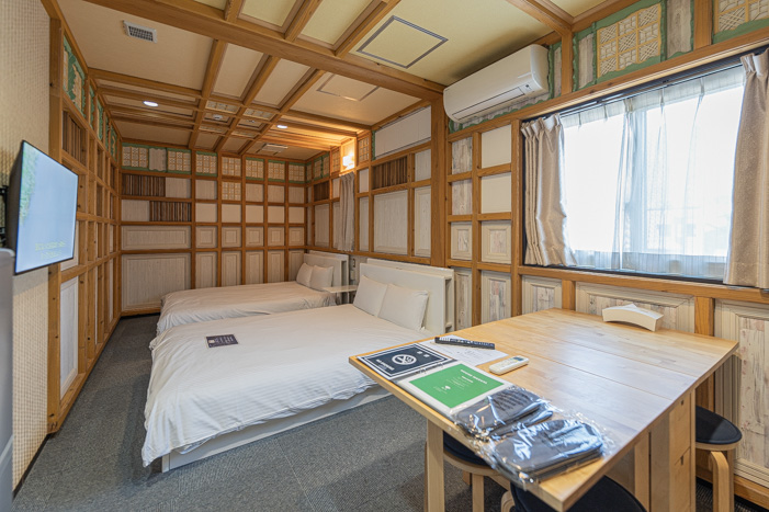 유후인역에서 도보5분,2025년 새로오픈한 게스트하우스. 유후인메인스토리트 유노추보거리관광을 늦게까지 즐기고 온천하고 잘자자고 즐겨보자고 한다면 딱 좋은 곳.전통 료칸이 많은 유후인지역에서는 온천과 식사가 세트로된 숙박시설이 많은편이지만 식사필요없이 유후인관광을 즐기는목적으로는 혼자여행으로 숙박해도 부담스럽지않다. 게스트하우스지만 객실은 넓고 비품도 부족없이 배치되어있고 깔끔한 룸컨디션.공용스페이스도 로그하우스 팬션처럼 앳홈한 느낌.숙박자는 오후9시40분부터 다음날 오전 9시까지 옆건물 숙박시설의 대욕장온천도 사용가능하고 가족탕은 1000엔 40분으로 예약이용가능.