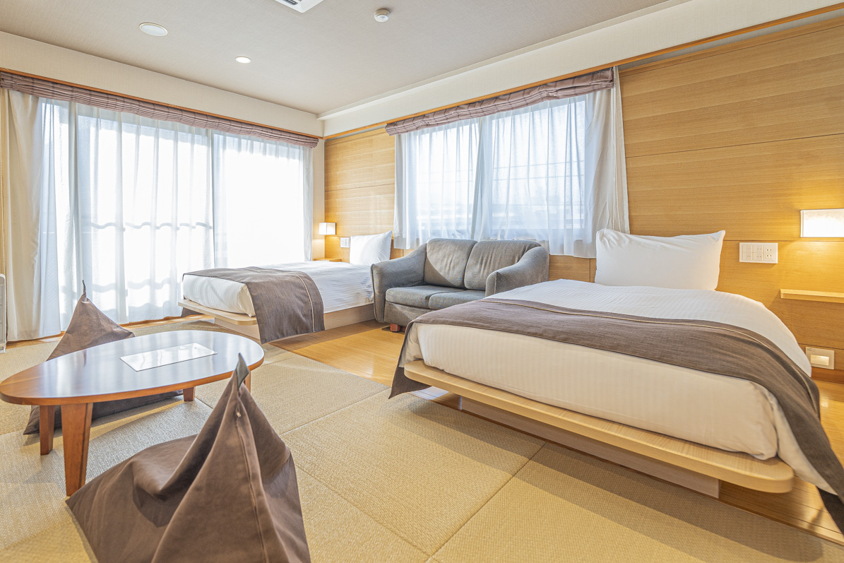 구마모토 아소에 위치한 ‘카메노이 호텔 아소 파크 리조트’는 가족 여행객에게 적합한 넓고 아기자기한 객실을 제공한다. 객실 곳곳에는 지역 마스코트인 쿠마몬 캐릭터가 디자인되어 일본 특유의 감성을 느낄 수 있다. 호텔 내에는 실내탕과 노천탕이 모두 갖춰진 카케나가시 온천이 있어 휴식에 적합하다. 저녁 식사는 라이브 키친이 포함된 뷔페 형식으로 제공되며, 야식과 조식까지 다양하게 준비된다. 인근 미야몬젠초 거리에서는 나가시 소면 체험, 전통 간식, 운세 뽑기 등 지역 문화를 함께 즐길 수 있다.