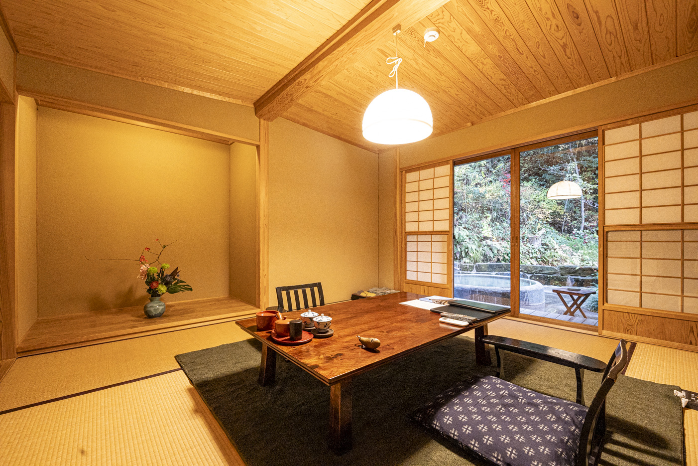 아름다운 산악 경관 속에 자리한 쿠오리테이는 도심에서 벗어나 완벽한 휴식을 선사하는 고급 료칸. 해발 1000미터의 산과 타데하라 습지에 둘러싸여 자연의 소리와 신선한 공기를 만끽할 수 있으며, 모든 객실에는 반 노천탕이 갖춰져 있어 언제든 온천을 즐기며 사계절의 풍경을 감상할 수 있다. 피부 미용에 좋은 탄산수소 온천수는 이곳만의 자랑으로, 진정한 힐링을 체험할 수 있도록 해준다.