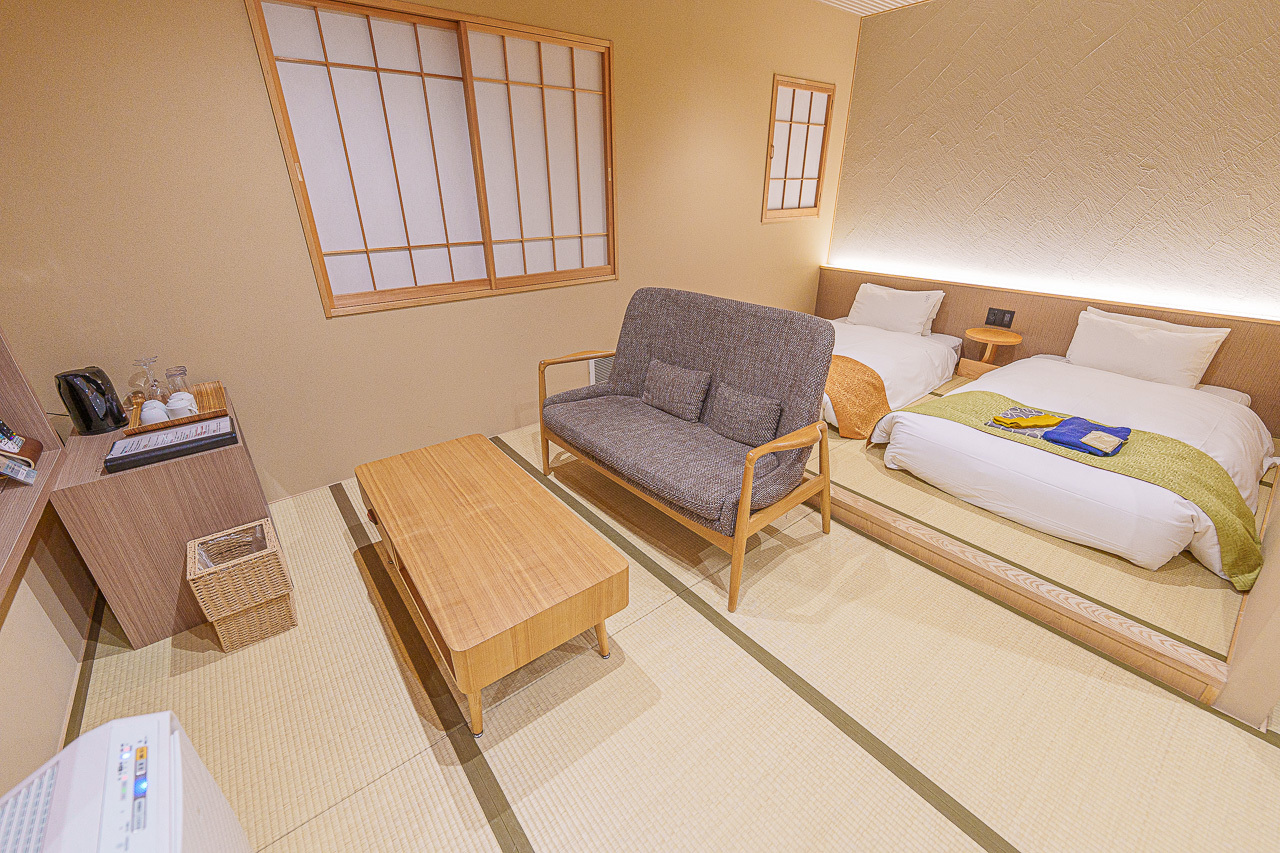 유노츠보 거리에서 도보 5분, 뛰어난 접근성을 자랑하는 ‘호타루노야도 센도우’는 조용한 분위기의 료칸이다. 객실은 클래식하면서도 넓고, 서양식 침대와 테이블, 공기청정기 등 편의 시설이 잘 갖춰져 있다. 대욕장과 가족탕은 24시간 무제한 이용 가능하며, 숲속에 있는 듯한 온천 분위기를 느낄 수 있다. 온천 후 바로 즐길 수 있는 생맥주 무제한 코너는 여행의 여유를 더해준다. 1박 2식 기준 18만 원부터로, 가격 대비 만족도가 높은 힐링 숙소다.
