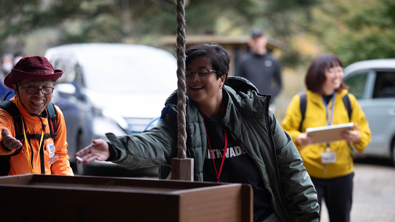 "오이타 분고 오노 지오 파크"의 전문 가이드가 안내하는 워킹 투어는 걸어서 지역의 자연을 탐색하는 모험. 아사지의 카미츠노 신사(神角神社)와 계곡, 그리고 꿀벌의 양봉장을 돌면서 지역의 생활 모습을 엿볼 수 있다. 신비로운 카미츠노 신사에서 천년이 넘는 역사를 지닌 신사로 아름다운 자연 속에 자리 잡은 신성한 곳을 만날 수도 있고 지오가이드의 역사와 신성한 스토리를 듣는것도 즐겁다. 자연과 어우러진 계곡을 걸으며 맑은 물소리와 새소리를 느낄 수 있는 힐링 시간. 지오파크에서의 지형 해설도 여기서만 경험할 수 있는 귀중한 체험. 꿀벌이 서식하는 양봉장을 방문하여 꿀벌의 생태와 지역 양봉가의 활동을 접할 수 있다.