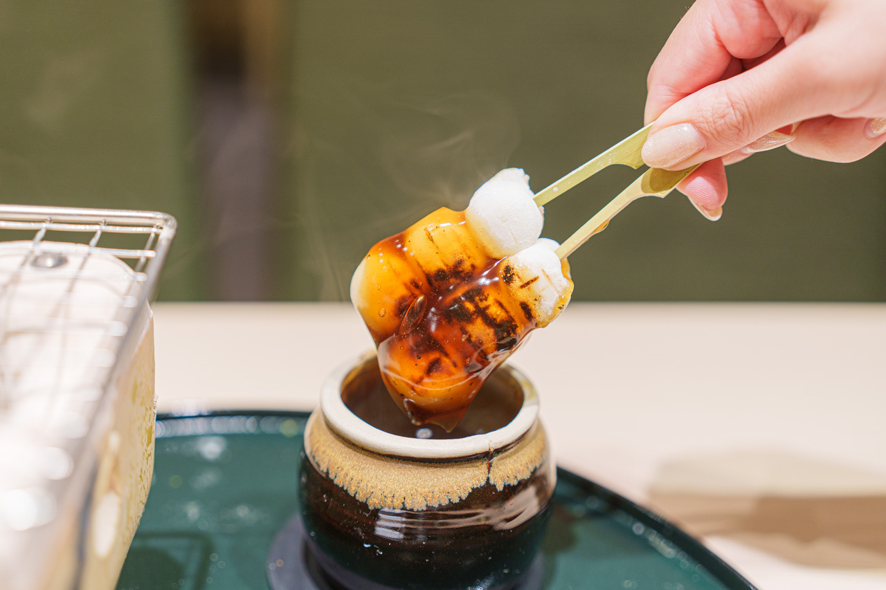 타키무라 엄선 유기농 말차를 사용한 프리미엄 빙수로 향긋한 말차의 감칠맛이 입안 가득 퍼진다. 미타라시 꿀 항아리 당고는 직접 굽는 은은한 단맛이 있는 당고를 미타라시 항아리 안에 들어있는 꿀에 푹 찍으면 갓 만들어서 나온 미타라시 당고를 즐길 수 있다